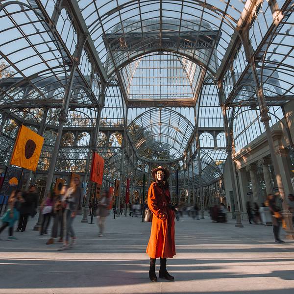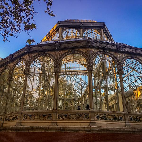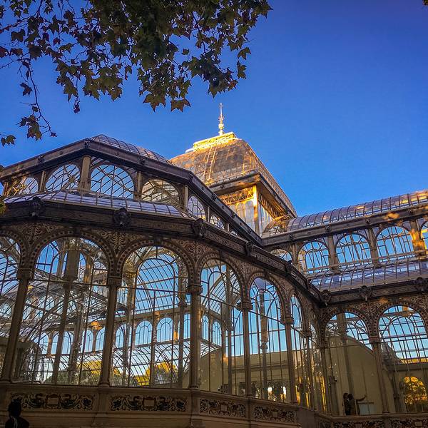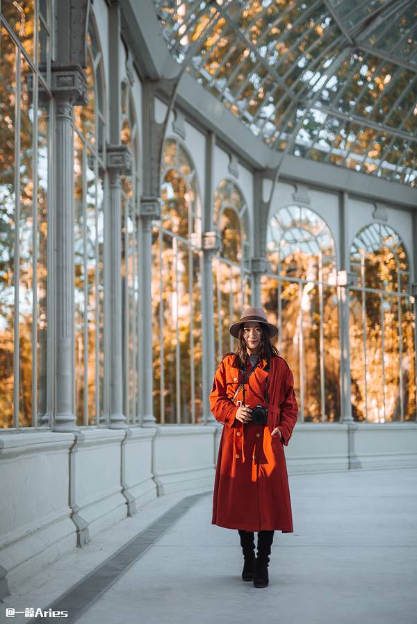 金骆驼 7点就关闭了而且会掐时间放最后一拨游客进去,不会等到整点才关闭,想进去参观的最好打出一些提前量从博物馆出来,太阳已经西斜,进馆时粉嫩的小教堂变得又黄又暴力。因为翔哥先背着我的相机走了,从普拉多去丽池的一路一身轻松,哼着小曲儿拿着手机东拍拍西看看。没几分钟就走到了丽池公园,一进大门就看到奇形...从博物馆出来,太阳已经西斜,进馆时粉嫩的小教堂变得又黄又暴力。因为翔哥先背着我的相机走了,从普拉多去丽池的一路一身轻松,哼着小曲儿拿着手机东拍拍西看看。没几分钟就走到了丽池公园,一进大门就看到奇形怪状的树,在金色的阳光里自顾自地搔首弄姿,全然一副主人姿态。这种树不知道天生就这个形状还是被修剪的,有点像鱼缸里的藻球。走着走着听见一阵挺欢快的音乐,一抬头是个挺淘的金发小哥↓,居然用吉他弹出了小步舞曲的味道,蹦擦擦蹦擦擦,如果是在童话里,满园子的人这时候就该跳起来啦!可惜不能听他弹完一曲,就急匆匆冲向水晶宫了。在路上听到一群叽叽喳喳的姑娘说要去什么什么"crystal"(西语发音), 我一猜就是水晶宫,于是手机导航也关掉了,一路跟怪蜀黍一样尾随着她们。晚风习习,梧桐叶子发出窸窸窣窣的响声,金色的阳光和斑驳的树影不均匀地打在眼前的玻璃房子上,像在深山迷路后发现的童话小屋,令人喜悦。水晶宫之前是用来养异国植物的温室,现在已经完全失去了这个作用,用来举办临时的展览。就在我在外面拍个不停的时候,水晶宫关闭了,我没能赶上最后一拨“进宫”的机会,只能从门外看看,好像里面也没什么,只是地上有一些不知道是什么的字。我还有个毛病,喜欢在很封闭很私密的地方呆着,比如房间角落,走进这么没有隐私的地方,感觉会有恐惧症。翔哥在我之前进去时拍的,喏,什么都没有吧……丽池公园不是一个传统意义上的景点。这里应该是我们的西班牙之行少有的当地居民可能大于游客的地方。入秋了,公园里的色彩也层叠着,红红绿绿大块大块地向眼球扑来。大路小路上有做各种运动的人们,也有人坐在草地上吃东西聊天。我跟翔哥在水边的台阶上坐下,漫不经心看着水里的鸳鸯谈着三角恋,一个来回一个来回地游,好像眼睁睁地看着时间在流逝,却毫不心疼。【TIPS】