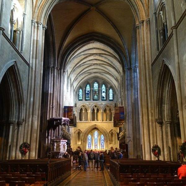 位于都柏林利菲河南岸西侧的圣帕特里克大教堂建立在基督教非常古老的起源地。公元四世纪,身为基督教徒的帕特里克因其彪炳的传教成就而被爱尔兰人追封为圣徒,据说他就是在这里的一口古井边受洗并皈依于基督教的。在教堂西侧的钟塔,是1370年整建时落成的,至今仍收藏着全爱尔兰较大的钟。 早期的圣帕特里克大教堂建于450年,其后经过几度改建至今天的规模。公元1181年,英王享利二世指派John Comyn为都柏林大主教后,陆续开始兴建圣帕特里克大教堂,一直持续到14世纪末,今日的教堂则是19世纪时改建的。 在这间教堂中,除了有早期凯尔特人的墓碑以外,还有在爱尔兰建国历史中的重要人物,包括爱尔兰共和国的总统,可以说,圣帕特里克大教堂对爱尔兰民族的重要性堪比英国的威斯敏斯特教堂。