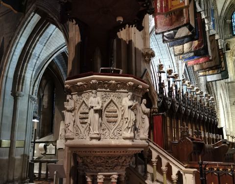 这里好像是历史感更浓重些,布道台的设计与众不同,装饰精美,美轮美奂,还有观众体验区,门票7欧,...教堂在我看来都差不多,这里好像是历史感更浓重些,布道台的设计与众不同,装饰精美,美轮美奂,还有观众体验区,门票7欧,有中文说明书,值得看看。