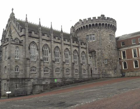 于1204年建成的都柏林城堡是都柏林市内较为古老的建筑之一, 其建筑风格和规模在建成之初堪称欧洲宏伟的城堡之一,有“城中之城”之称,一度是中世纪都柏林南北两岸之间的要塞。豪华的城堡内部由来自沃特福德的水晶以及意大利的大理石等稀有建材装饰,现在已经成为爱尔兰历任总统就职典礼的例行举办地。 城堡呈长方形,四角由四座陪堡组成,1169年,诺曼人登陆爱尔兰的威克斯福特郡,并在之后的几年内一直控制着都柏林。三十年后,英格兰的约翰王授权建造一个城堡用以存放他的税收和珍宝,并作为在爱尔兰的一个英国基地。都柏林城堡便是在这样的历史背景下建造的。1684年的祝融之炎使得古城堡的大部分建筑遭到破坏,仅有一座陪堡得以完整保存,所以城堡内现有的老建筑大部分是火灾后的所留下的物品。