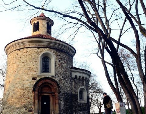 高堡据说是“波西米亚王朝”的王权发源地和所在地,和布拉格其他城区一起被列为世界遗产名单。有别于布拉格城区的喧嚣,高堡多了几分清悠和寂静。而其较高的地势,不失为鸟瞰整个布拉格的较佳眺望点。 历史背景 高堡建立于10世纪,位于伏尔塔瓦河边的山丘上。作为捷克王权的发源地,传说中波西米亚王朝莉布瑟公主(Libuše)和英俊的农夫相爱,并生下了Nezamysl,开启了捷克的普热密索利德王朝(Přemyslid)。此后,百年间所有波西米亚国王都在此加冕。直到1883年,高堡成为布拉格的一个区。 参观导览 里面的景点众多,较知名的有圣马丁圆顶小教堂,圣彼得与圣保罗教堂、高堡墓园。可以花上半天时间散步游览景点。 从地铁站出来后,首先来到高堡的城门,进入后一会就能看到整个布拉格仅剩三座仿罗马式建筑中较古老的一座——有名的圣马丁圆形教堂。随后可见哥德式双尖塔的圣彼得与圣保罗(The Church of SS Peter & Paul),里面的一具在十二世纪出土的石棺和第三座礼拜堂祭坛上“女雨神”(Madonna of the Rains)的版画,非常值得一看。 参观完教堂后,到教堂北侧,则是很有名的高堡墓园,里面安葬着德佛札克、慕夏等布拉格有名的艺术家、作家和音乐家。