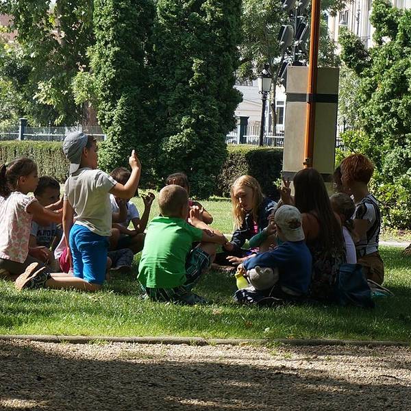 最后稀里糊涂的买了三个人的门票,好像是2542Ft,折合人名币56.博物馆还包括国王加冕时的古老器物回到博物馆,看见当地幼儿园的小朋友在草坪玩游戏,就这么几个小孩,老师就有2人。