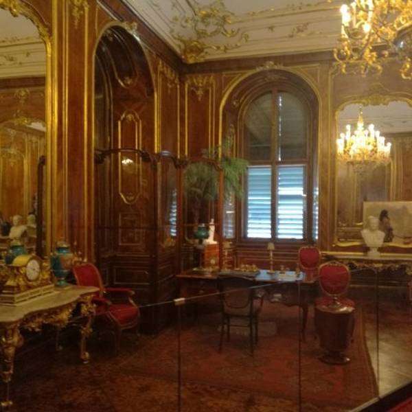 美泉宫建筑风格为巴洛克式,各种拱顶和精细雕刻气势磅礴。当然在这无数个房间中,也有洛可可风格,日式的,甚至还有青花瓷为装饰元素的中国式装修。印象深刻的莫过于刚到访欧式的主卧,转身就进入了中式的房间,四周房顶甚至柜子都是檀木设计,还有那数不清的陶器。