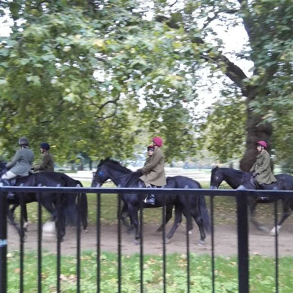 海德公园里除了河畔小路,还有林荫道、自行车道和骑马道,确实有人骑马经过。