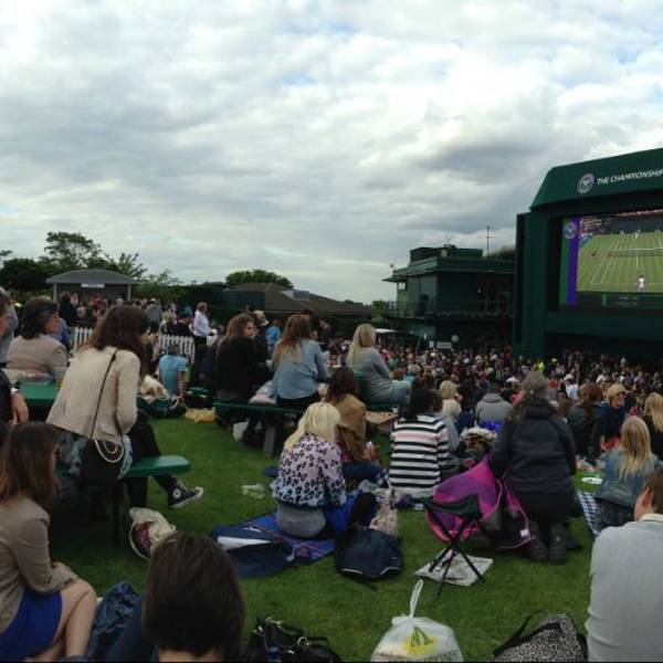 温布尔登网球公开赛第一天,四大满贯赛事不用多说啦,冲他才把最后一周全部安排在了伦敦。温网的排票是出了名了,幽默的大爷总说这是The Best British Queen,大家坐地铁从Southfield下车,走到Park 10去排票,基本上你要不是前天就来搭帐篷等第二天的票,或者早上4点就到这,基本上是就得下午5点以后才能进去了,因为球场内的容纳人数是一定的,满了之后,需要出去多少人,才能进入多少人。不过不要慌,一般大牌种子选手都会安排在Center Court的最后一个登场,基本上就是5点以后了。第1天排的是1万多号,5点以后进去,Murrey才刚开始,Nadal还在打,只不过一会儿就被一记Ace球打出局了。第2次排的是8千多号,5点左右进去的,Fedder还没打呢。所以大家就当是温网是郊游来了,野餐聚会。对了,进Ground的门票是每人21磅,如果要看Center Court或者Court1或者2的都要另付费,53磅起,越往后越贵。