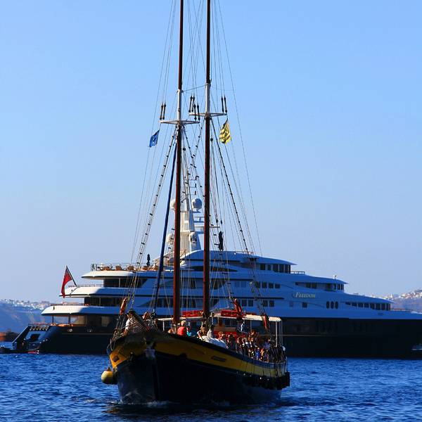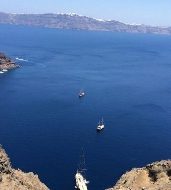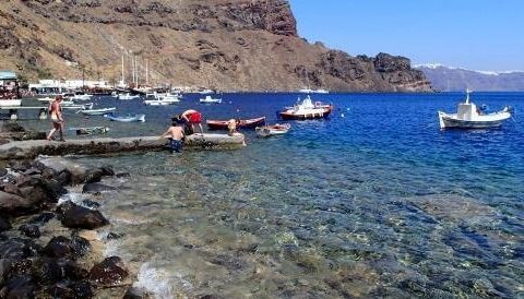 去火山游玩有两种,一种就是在费拉随便找个旅行社报团,一条船有80-100人的,人均20欧去火山游玩有两种,一种就是在费拉随便找个旅行社报团,一条船有80-100人的,人均20欧。或者有钱就包游艇,一天一条游艇500欧左右。我们想想属于穷人,毫不犹豫选择了前者。