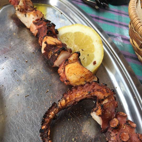 这里的海鲜烧烤分分钟让人想回北京撸串锡夏拉岛的港口边有很多餐馆,如果体力充足,不妨走到半山腰,边欣赏海景边吃顿饭。这里的海鲜烧烤分分钟让人想回北京撸串。