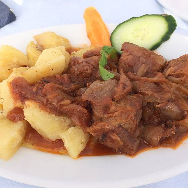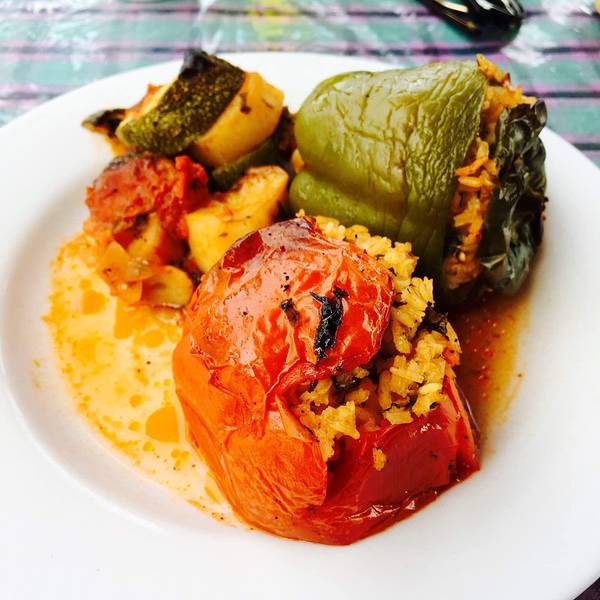 希腊的红酒非常甘甜,后劲也大……。欧洲的米饭真的不敢恭维,红色的是狮子头……俗称肉圆。路边烤肉day18