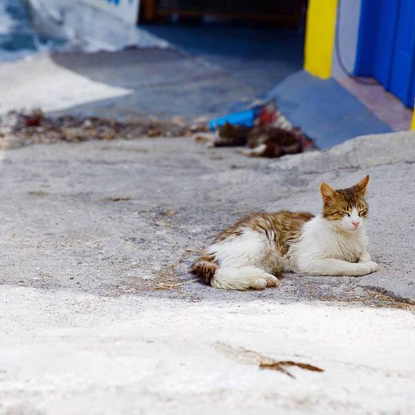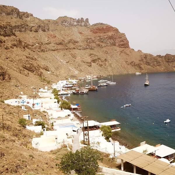 这里也有圣托里尼标志性的白色房子,并配以蓝色点缀,除此之外,景色实在是一般,当然也跟当天的天气有关系温泉浴结束之后,就前往最后一站——小锡拉岛(Thirasia)。