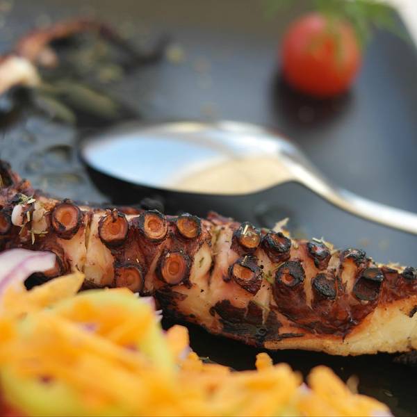 刚爬上来,我就嚷嚷着饿了,拉着BIBO就跑到了一家推荐的餐厅NAOUSSA,老板人非常好,所有的面包和葡萄酒都是Homemade,烤八爪鱼和西红柿酱肉球都巨赞,TT一个人吃了一整条有两个拇指那么粗的八爪鱼须,整顿饭都非...