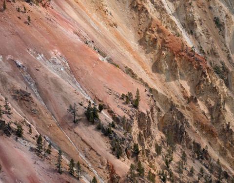 熔岩地层是黄石公园的大峡谷中最容易看到的岩石。黄石河继续雕刻着这些古老的熔岩流熔岩地层是黄石公园的大峡谷中最容易看到的岩石。黄石河继续雕刻着这些古老的熔岩流。大峡谷是一个典型的V形河谷,这表明了大峡谷是河道型侵蚀