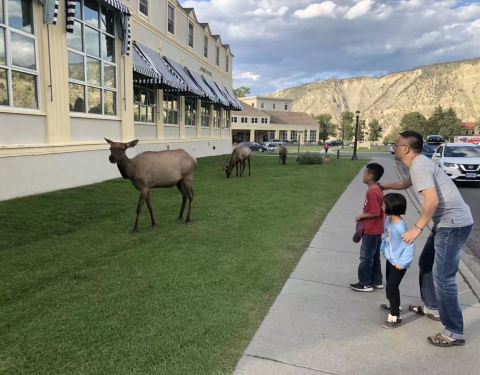 ...的区域,进入丘陵草原地带,据说这种地形熊和鹿最多,果然都让我们碰到了,熊只是远远看到,不敢走近一路向北,地貌大不一样,从森林密布的区域,进入丘陵草原地带,据说这种地形熊和鹿最多,果然都让我们碰到了,熊只是远远看到,不敢走近;而鹿呢,我们正好经过一个鹿的栖息地,正好在人口密集的区域,鹿也不怕...一路向北,地貌大不一样,从森林密布的区域,进入丘陵草原地带,据说这种地形熊和鹿最多,果然都让我们碰到了,熊只是远远看到,不敢走近;而鹿呢,我们正好经过一个鹿的栖息地,正好在人口密集的区域,鹿也不怕人,随意在街道行走;晚上回程的时候,也碰到路边有两只狐狸出来觅食…… 不得不说,黄石真是野生动物的天堂!我感叹羡慕动物们能生活在这么美的地方时,通行14岁的小姐姐说,再美的地方,没有网络我都不喜欢。 展开
