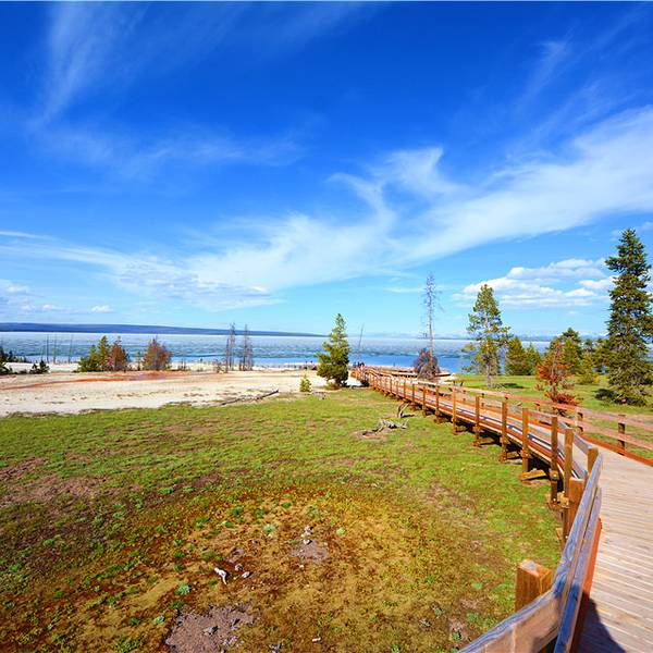 实用 推荐的第一个观景点是西拇指。特色:黄石湖是整个北美高海波地区的最大湖泊,贯穿了整个公园,不容错过特色:黄石湖是整个北美高海波地区的最大湖泊,贯穿了整个公园,不容错过。如果想与黄石湖来个亲密接触,可以选择乘船和钓鱼两种方式,有不同种类的tour可以选择。不过这个湖一年四季的温度都比较低,所以不推荐...特色:黄石湖是整个北美高海波地区的最大湖泊,贯穿了整个公园,不容错过。如果想与黄石湖来个亲密接触,可以选择乘船和钓鱼两种方式,有不同种类的tour可以选择。不过这个湖一年四季的温度都比较低,所以不推荐游泳。观景点推荐:黄石湖由于面积很大,所以在许多观景点都可以看到,不过在不同地点观赏黄石湖风味各异,景色也大相径庭。推荐的第一个观景点是西拇指。这个景点并不赫赫有名,所以很容易被忽略。但是如果想看奇特的热湖冷泉的景色,则千万不要错过西拇指。整个黄石湖的形状非常有特色,居然神奇的呈手状,而西拇指则指的是西边类似大拇指形状的一片水域。在这里看到的黄石湖水域并不算开阔,只是两大主要水域中比较小的一个,但是西拇指的神奇之处在于在湛蓝的黄石湖水旁,坐落着大大小小的热泉。蓝天碧水之下,彩池烟雾升腾,迷人至极。推荐的第二个观景点是钓鱼桥往东的山上,这里是黄石湖水域最大视野最开阔的地方。具体路线:钓鱼桥往东的路开始是沿湖行进,一旦离开湖区立刻左拐上山,往湖的方向望去,景色简直让人惊叹。黄石湖比我想的要大很多很多,看着漫无边际的湛蓝湖水,心旷神怡。