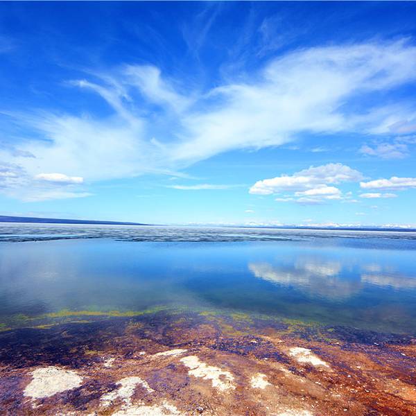 位于黄石国家公园东南部的黄石湖,清澈的湖水,倒映着湖边雪白的山峰和幽深的树林,非常漂亮位于黄石国家公园东南部的黄石湖,清澈的湖水,倒映着湖边雪白的山峰和幽深的树林,非常漂亮。 最有特色的是,靠近湖岸的浅水区,有着一个个不时冒着泡泡的喷泉口; 美丽的岸线旁,一簇簇倒伏的枯枝,与绿油油的大...位于黄石国家公园东南部的黄石湖,清澈的湖水,倒映着湖边雪白的山峰和幽深的树林,非常漂亮。 最有特色的是,靠近湖岸的浅水区,有着一个个不时冒着泡泡的喷泉口; 美丽的岸线旁,一簇簇倒伏的枯枝,与绿油油的大树相映成趣。 展开