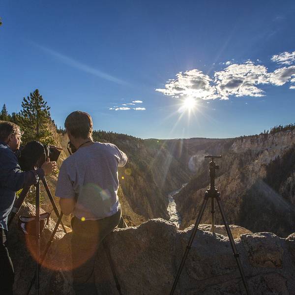 临近夕阳的黄石峡谷下瀑布老法师谆谆教诲的背影这台机器,不查不知道,一查吓出尿。。。光机身35万元。。。...从北缘绕出来后看太阳还没落山,又去Artist Point打了一头,结果在此碰到了两位货真价实的老法师。。。