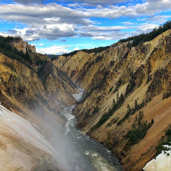 黄石河是美洲有名的大河——密苏里河的主要源头,全长1114千米,发源于黄石国家公园内的扬特山峰(Yount),在Thorofare Valley流入黄石湖,在钓鱼桥流出,向北经LeHardy 's Rapids,缓缓流过海顿山谷。此后,河水变得湍急,形成上下瀑布。黄石河流向北流过的行程雕刻了两个色彩斑斓的峡谷——黄石大峡谷和黄石黑峡谷。其在北达科他州注入密苏里河,经密西西比河,终在墨西哥湾流入大西洋,是美国大陆上非常长的没有水坝的河流。在接纳了很大支流拉马尔河(Lamar River)后,黄石河经过黑峡谷,流入蒙大拿州。