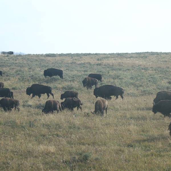 遇...景点7:黄石瀑布。随处一拍都是景:遇到了成群结队的西部大野牛: