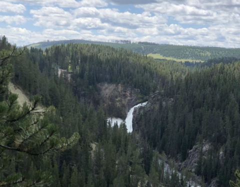 必须走到下瀑布边观赏,需要徒步单程约30分钟,视个人体力而定。绿水奔流,天高地远,一派气势恢弘的场景Lower Falls 黄石下瀑布必须走到下瀑布边观赏,需要徒步单程约30分钟,视个人体力而定。这条路不是平路,而是向下绕行,所以下行很容易,但是上行则较痛苦。虽然路牌上显示可以步行到上瀑布,但是当我们到达最底...Lower Falls 黄石下瀑布必须走到下瀑布边观赏,需要徒步单程约30分钟,视个人体力而定。这条路不是平路,而是向下绕行,所以下行很容易,但是上行则较痛苦。虽然路牌上显示可以步行到上瀑布,但是当我们到达最底层的观景台,发现无路可以通向上瀑布,不过一路绕行下来的途中,可以远远的看到上瀑布,从这个角度来看,上瀑布的落差确实要明显小于下瀑布。黄石河,它由黄石峡谷汹涌而出,贯穿整个黄石公园。黄石河将山脉切穿而创造了神奇的黄石大峡谷。在阳光下,两峡壁的颜色从橙黄过渡到橘红,仿佛是两条曲折的彩带。由于较大的落差,黄石河水飞瀑而下气势磅礴,十分湍急。绿水奔流,天高地远,一派气势恢弘的场景!当然,如果你有足够的时间游玩黄石大峡谷,还有很多步行道以及著名的Artist Point可以参观。