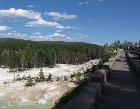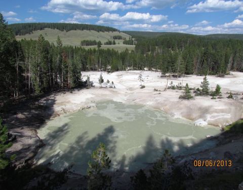 奔流不息的温泉随着阶地奔腾而下,且颜色各异,形成了一个七彩的大台阶,景象非常恢宏壮观北门的酒店就在黄石河的边上猛犸象温泉(Mammoth Hot Springs)是世界上已探明的最大的碳酸盐沉积温泉。猛犸象温泉的水温可达77℃,很多藻类生活在温泉中,使得温泉的颜色呈现出棕色、橙色、红色和绿色。奔流不息...北门的酒店就在黄石河的边上猛犸象温泉(Mammoth Hot Springs)是世界上已探明的最大的碳酸盐沉积温泉。猛犸象温泉的水温可达77℃,很多藻类生活在温泉中,使得温泉的颜色呈现出棕色、橙色、红色和绿色。奔流不息的温泉随着阶地奔腾而下,且颜色各异,形成了一个七彩的大台阶,景象非常恢宏壮观。从北门到这里非常近。工作人员给介绍黄石公园的历史,听不懂啊黄石公园的东北部分区域 展开