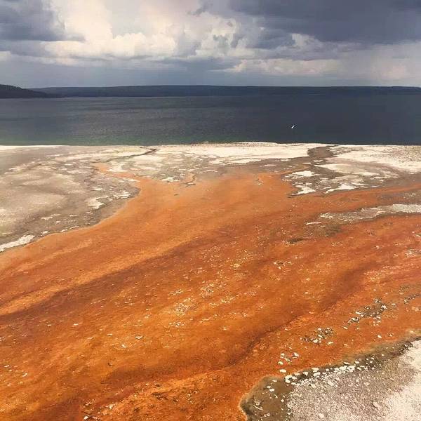 随着每次喷发,仍然在不断成长中。 头顶的乌云犹如间歇泉喷出的浓烟,如此恢弘,如此大气最后我们就来到了上间歇泉盆地,该景区位于公园的西南面,囊括了全世界约1/4的间歇泉,是公园地热现象最集中的地区。里面最著名的当然是老忠实泉,其他还有4个可预测喷发的大间歇泉:城堡间歇泉(Castle),大间...最后我们就来到了上间歇泉盆地,该景区位于公园的西南面,囊括了全世界约1/4的间歇泉,是公园地热现象最集中的地区。里面最著名的当然是老忠实泉,其他还有4个可预测喷发的大间歇泉:城堡间歇泉(Castle),大间歇泉(Grand Geyser),雏菊间歇泉(Daisy)和河边间歇泉(Riverside)。除此之外,饼干盆地(Biscuit Basin)和黑沙盆地(Black Sand Basin)也属于上间歇泉盆地的范围内,所以整个上间歇泉区的范围真的非常非常大,就是在这里,我们两个人的腿都快走断了!!饼干盆地位于该景区的最北边,下车后看到的依然是妖娆的火洞河,河岸的大面积色块,真的有种摄人心魄的魅力。为啥这么好看的热泉没有名字呢,可以叫它们蓝色三兄弟吗?↓墙池(Wall Pool),完完全全的Tiffany蓝有没有!!蓝宝石池(Sapphire Pool)应该算是饼干本地里最漂亮的一个彩泉了吧,虽说蓝色的热泉已经看过很多,但能透过泉水,清楚看到泉口里面的,还真不多见,可见它蓝的有多透明,更奇妙的是泉水流经的地方,竟然形成一条亮黄色水流,一直延伸向远方。
