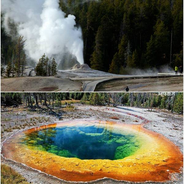 ↓大间歇泉(Grand Geyser)百度了一张它喷发的照片,还挺后悔没等的。大间歇泉周围也围了一圈凳子,某人一屁股坐在上面,死活不肯起来!!其实我也挺累的,但坚持没有坐下,知道一旦坐下就再也站不起来了。看着前后一眼望不到头的栈道,感觉进退两难,哎,还是咬咬牙,继续往前走吧!!路尽头是最美的牵牛花池,这份对它的期待支撑着我们继续前行。