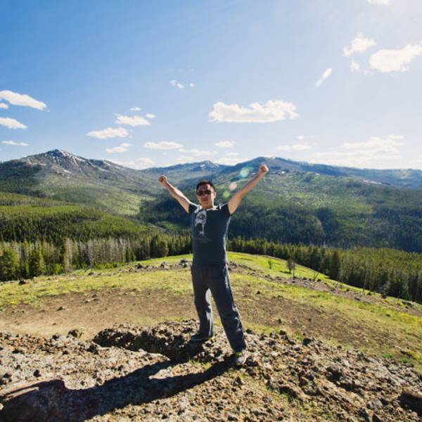 翻越海拔3122米的渥士伯恩山(Mount Washburn),山顶有终年不化的积雪。