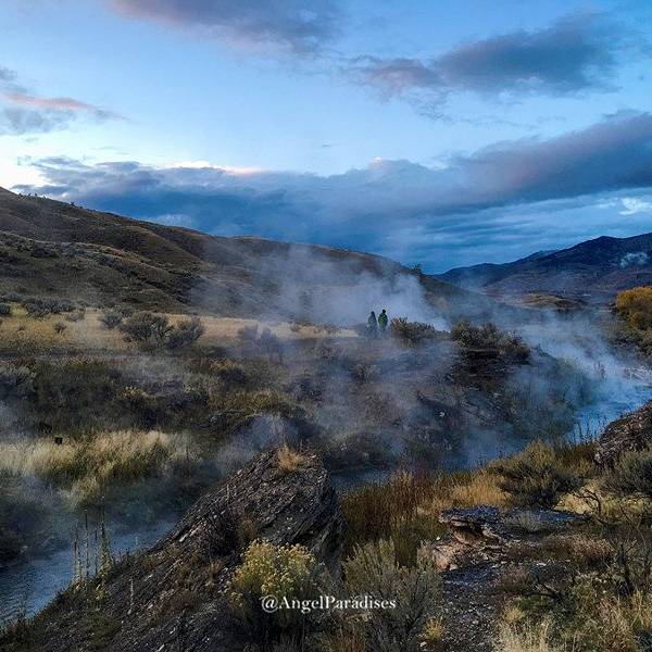 那天下午,我们顺着河流默默地走向山谷深处,我一个人落在了队伍的最后,周围安静地有点毛骨悚然,想转身看看后面有没有什么人或动物的,结果一转身竟被一片山谷夕阳美景给震住了!从来没有见过如此壮丽绚烂的自然风光,简直如一幅油画般细腻,美的太让人不敢相信!随着山谷烟雾越来越浓烈,温泉也就越来越近了。温泉周围没有木屋或栅栏让人换衣物的,最近可以换衣服的地方也只能是停车场的厕所,虽说黄石才下几天雪,山谷的气温仍是非常低,不可能穿着泳衣裹毛毯来回500米。观察好地形后,我们是第二天早上来泡地温泉,直接把游泳衣穿里面,外面套着宽松外衣,带上酒店大浴巾,从温泉出来快速擦干身体套上外衣再换衣服,反正这个天泡黄石温泉还是要非常有勇气的!说实话,泡会儿温泉出来并有想象得那么冷,感觉还是棒棒哒!这样一片山谷,一边是美腻夕阳,一边是烟雾缭绕,指环王里的仙境也不过如此。所幸用手机记录下那一刻,否则连我自己都会怀疑那个美景是在梦里出现,而并不是真实存在过。 展开