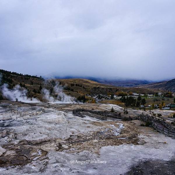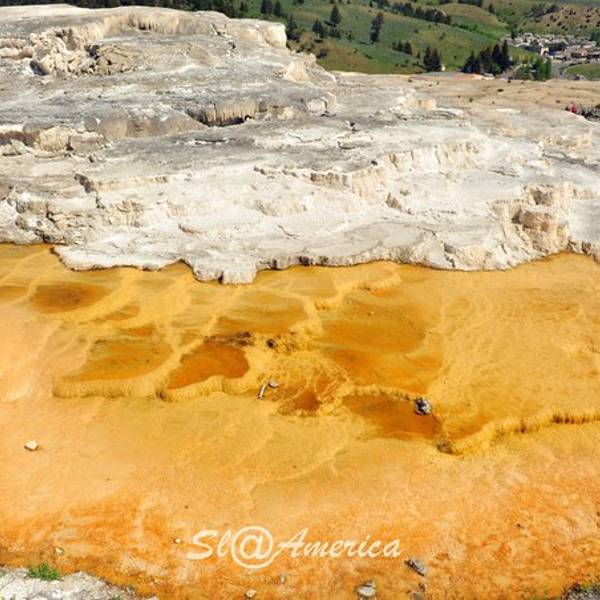 ...只能是停车场的厕所,虽说黄石才下几天雪,山谷的气温仍是非常低,不可能穿着泳衣裹毛毯来回500米猛犸热泉Mammoth Hot Spring是世界上最大的碳酸盐沉积温泉,跟四川黄龙很像,不过黄龙是冷泉,猛犸是热泉,掉进去人是会化掉的,这个可不能当温泉泡啊!重点来了!想知道刚才看到的小视频温泉在哪儿吗?!没错,...猛犸热泉Mammoth Hot Spring是世界上最大的碳酸盐沉积温泉,跟四川黄龙很像,不过黄龙是冷泉,猛犸是热泉,掉进去人是会化掉的,这个可不能当温泉泡啊!重点来了!想知道刚才看到的小视频温泉在哪儿吗?!没错,这个温泉就在北门温泉酒店附近,往北门开车十来分钟,有个小停车场,从停车场走进去500米就是那个冒着热烟的温泉点了,冰凉的湖水和热气腾腾的地热温泉,冷热交汇简直就是冰火两重天啊!