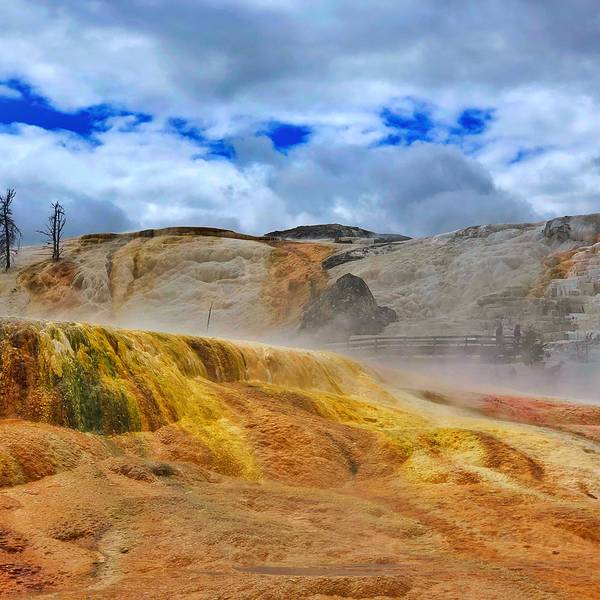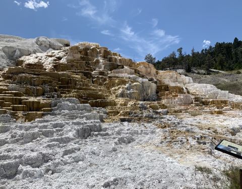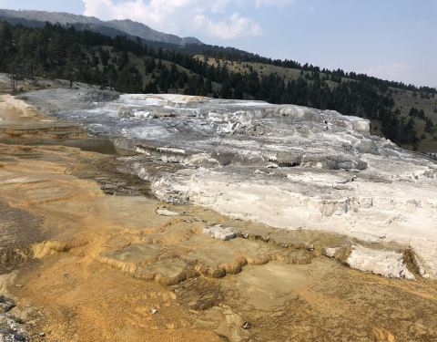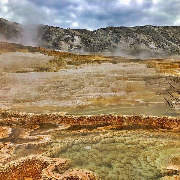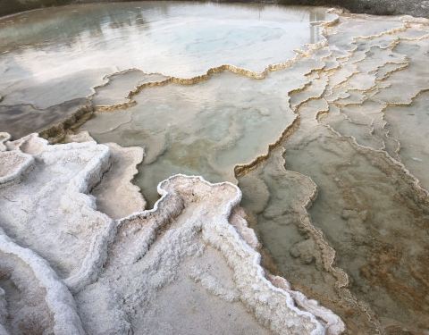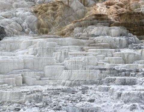 远望去堆金积玉、晶莹剔透,作为吃货兜兜觉得还蛮像一层层的奶油蛋糕呢,所以这里也被俗称为“蛋糕温泉”曾经的色彩斑斓、流光溢彩,如今只剩下萧瑟干枯的梯田...远望去堆金积玉、晶莹剔透,作为吃货兜兜觉得还蛮像一层层的奶油蛋糕呢,所以这里也被俗称为“蛋糕温泉”。蛋糕温泉的陨落标志着黄石公园活火山的存在。随...曾经的色彩斑斓、流光溢彩,如今只剩下萧瑟干枯的梯田...远望去堆金积玉、晶莹剔透,作为吃货兜兜觉得还蛮像一层层的奶油蛋糕呢,所以这里也被俗称为“蛋糕温泉”。蛋糕温泉的陨落标志着黄石公园活火山的存在。随着地壳变动,原来很活跃的地方有可能突然安静下来;原来籍籍无名的地方也可能会一鸣惊人的。 展开