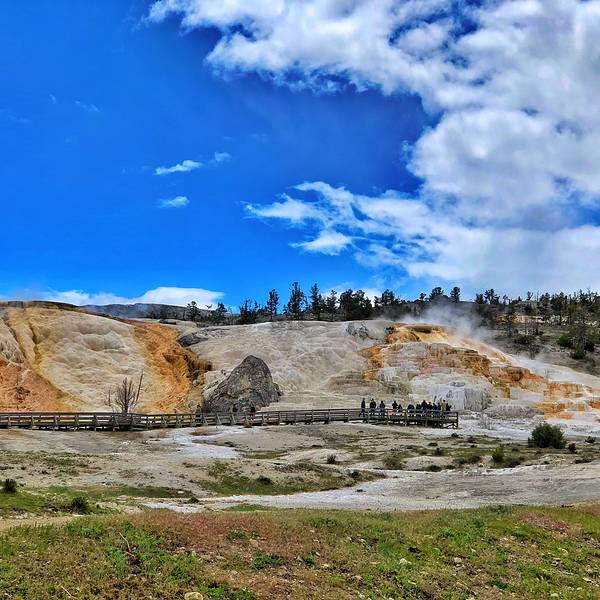 猛犸象温泉(Mammoth Hot Springs)是世界上已探明的最大的碳酸盐沉积温泉。其景观以石灰石台阶为主,也称热台阶区,可分为上...作为西北区域的象征性的景点,这里的人真是不少,靠近入口处的停车场经常人满为患。