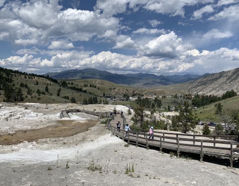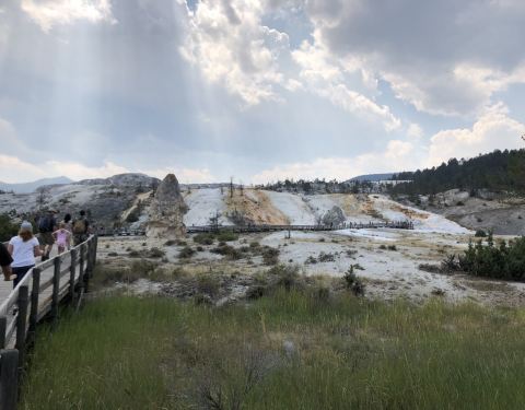 猛犸象温泉区是美国黄石国家公园最有特色的旅游景点之一 那种恢弘壮阔的景色,令人惊叹。非常值得去欣赏猛犸象温泉区是美国黄石国家公园最有特色的旅游景点之一 那种恢弘壮阔的景色,令人惊叹。不同的季节,不同的年份,给人展示的是不同的画面。非常值得去欣赏。