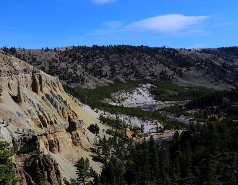 黄石上下瀑布是由黄石河水侵蚀质地较软的岩石形成的。峡谷瀑布区在8字形公路,两个圆相接处的右端。黄石河,它由黄石峡谷汹涌而出,贯穿整个黄石公园。黄石河将山脉切穿而创造了神奇的黄石大峡谷。在阳光下,两峡壁的颜色从橙黄过渡到橘红,仿佛是两条曲折的彩带。 展开