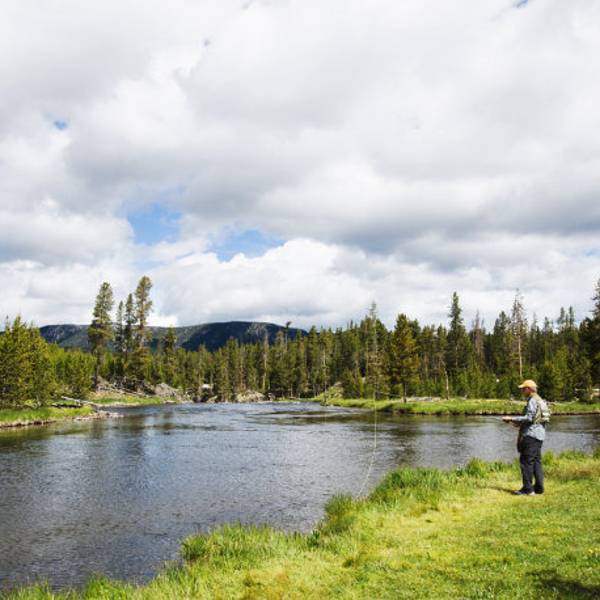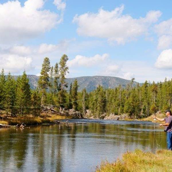 胖哥哥在我们的相机前一次次的挥杆,非常配合哟继续前往Midway Geyser Basin路上,Firehole river沿路有很多钓鱼的人。