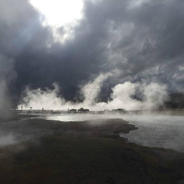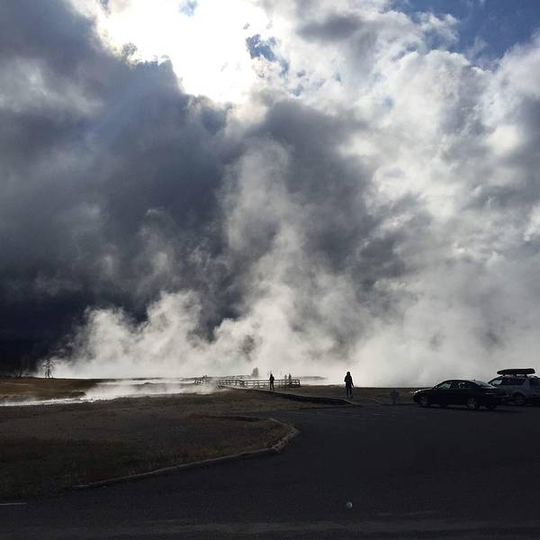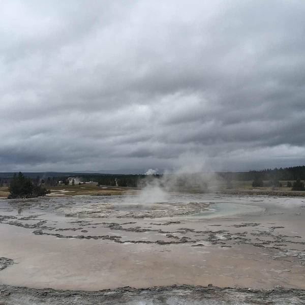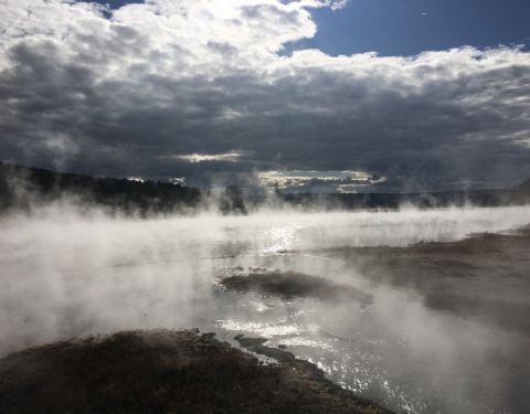 Firehole Lake,又是一群地热温泉,间歇泉,阴云下烟气氤氲,很有feel。下午大风阴雨下午大风阴雨。加衣后又上路,不见蓝天白云,也是一番风景。