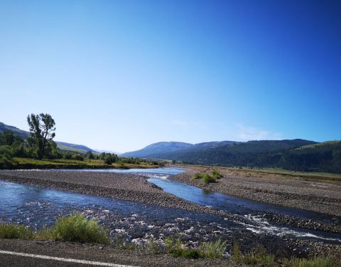 这里的 自然风光非常棒,据说这里可以看到很多的虹鳟,但是实际却没有找到。十分具有特点火洞河离老忠实喷泉很近,然后注入麦迪逊河。这里的 自然风光非常棒,据说这里可以看到很多的虹鳟,但是实际却没有找到。这里的河岸被画出了一个S形,并且配上了五颜六色。十分具有特点