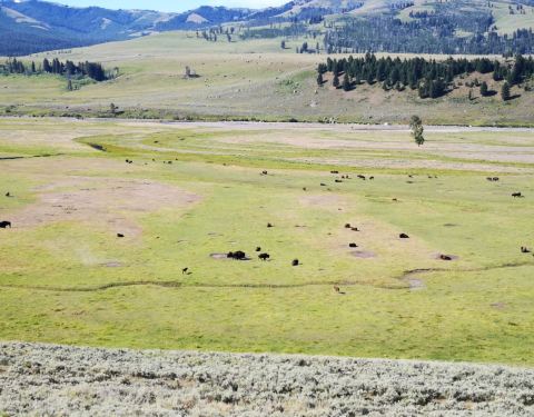 ...段时间发生了野牛顶飞小女孩的事情,游客们都不敢靠近野牛了,基本上距离野牛150码的地方就停止了北美野牛会在河流两边牧草丰富的地方聚集,但是由于前一段时间发生了野牛顶飞小女孩的事情,游客们都不敢靠近野牛了,基本上距离野牛150码的地方就停止了