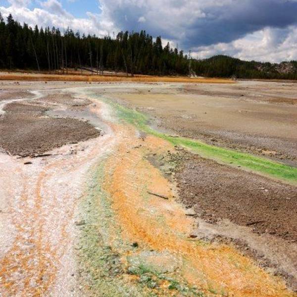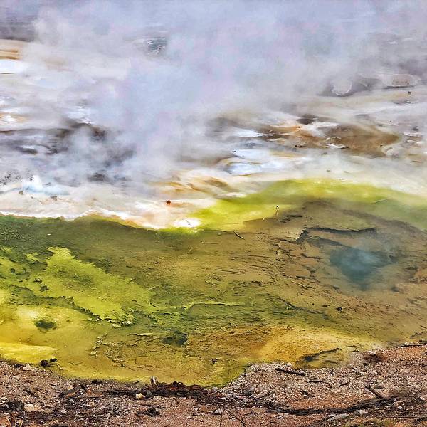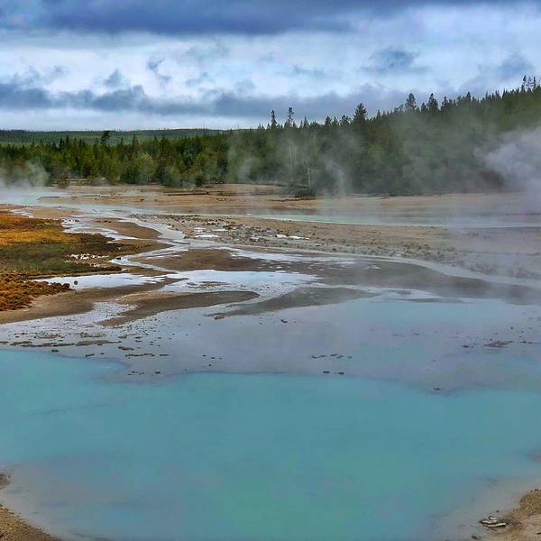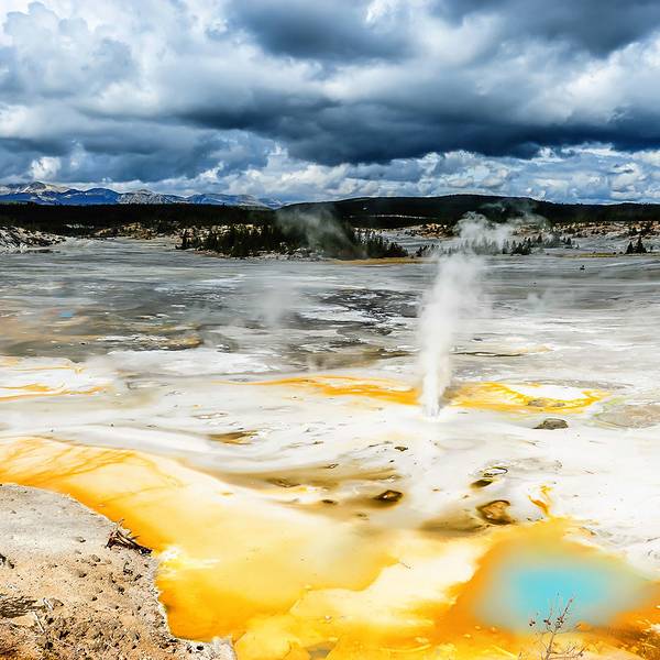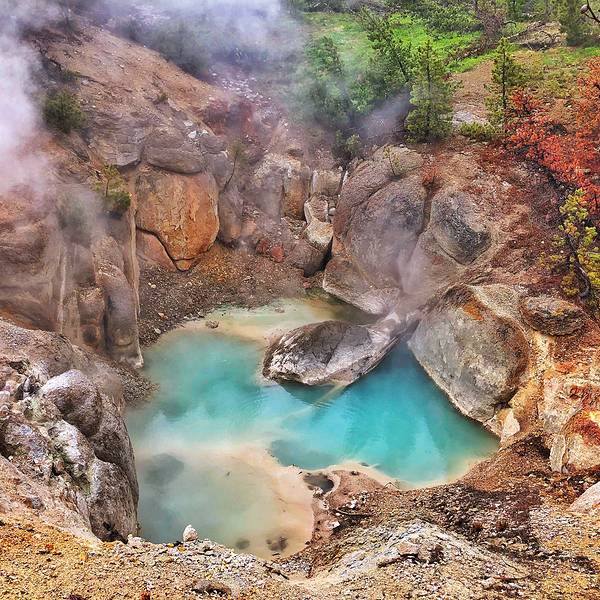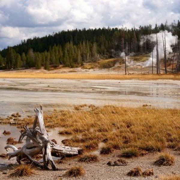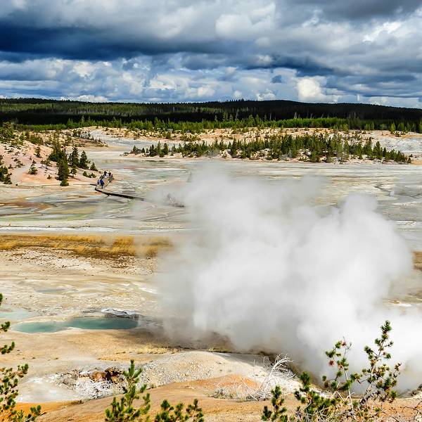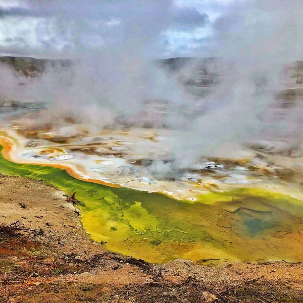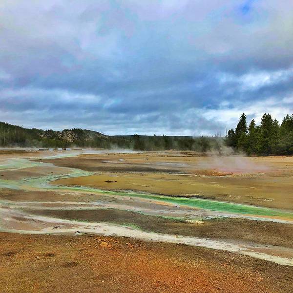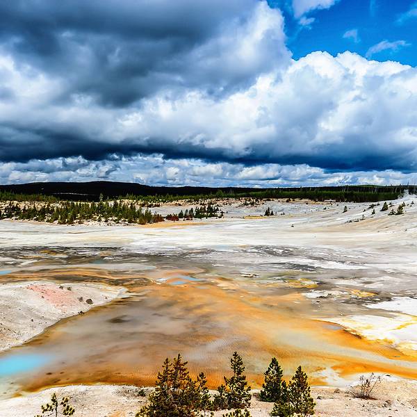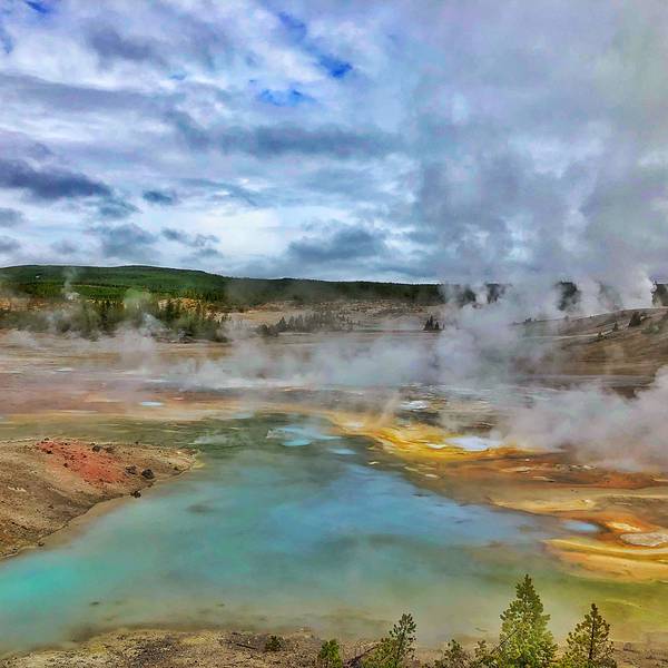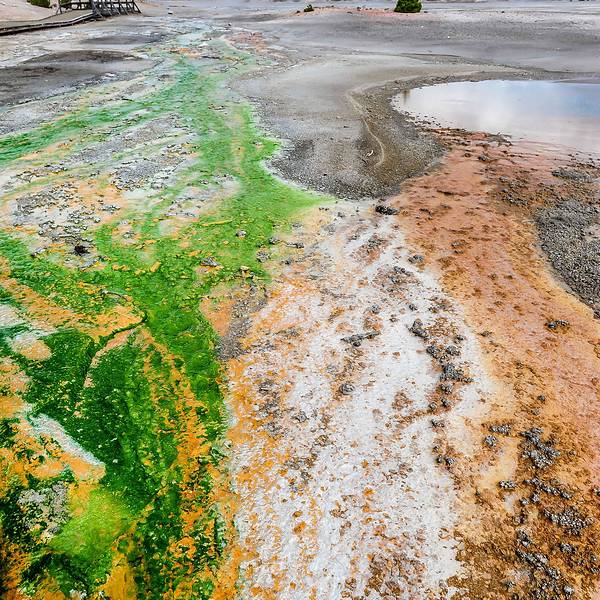 本来想径直前往猛犸象热泉的,无奈发现8字型左上的公路又封路,又!封!路!我了个去,又得多绕60多miles好么!!这几天被黄石公园的封路搞得有点无语啊!于是先去Norris Geyser Basin去逛逛,这片名为Porcelain的热泉盆地如期名字,整片平原都是洁白如瓷器,入口处便是凶猛的蒸汽冒着嗤嗤的响声,滚滚白雾扑向天空,这里可以看到绿色和棕色的小溪,还有乳白色的岩石中宝蓝色的小热泉,仙境一般!