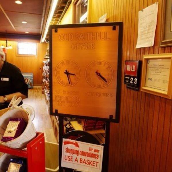 老忠实喷泉游客中心会提前摆出喷发时间表。看好时间,去老忠实酒店逛逛,然后去旁边候着,基本不会错过