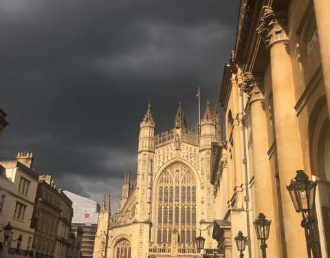 “琴键上,透着光,彩绘的玻璃窗,装饰着哥特式教堂……”虽然这是《布拉格广场》中的歌词,用来形容巴斯修道院却再适合不过。巴斯修道院的全名叫作圣彼得与圣保罗修道院教堂,是巴斯市精致的市中心里规模较为宏大的建筑,也是让游人永远不会迷路的地理标志。教堂的平面图呈十字形,从雅芳河畔一直蔓延到市区热闹的地段,它创建于7世纪,又于12和16世纪重建,是英格兰西部大型的垂直哥特式建筑。 不同于约克大教堂无处不在的中世纪内涵以及伦敦西敏寺大教堂的精神象征,巴斯修道院是纯粹地以其华丽的建筑雕刻和巍峨的布局结构吸引眼球的哥特式教堂。在巴斯修道院内部,你可以看到数十米高的56幅彩绘玻璃窗,共同组成耶稣受难图的完整画卷,那种震撼人心的肃穆之情,直教人瞠目结舌。