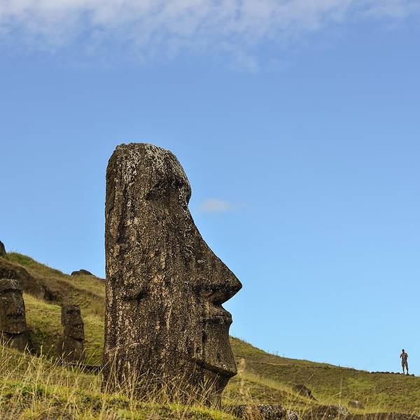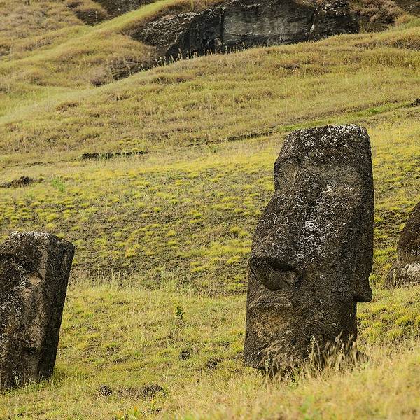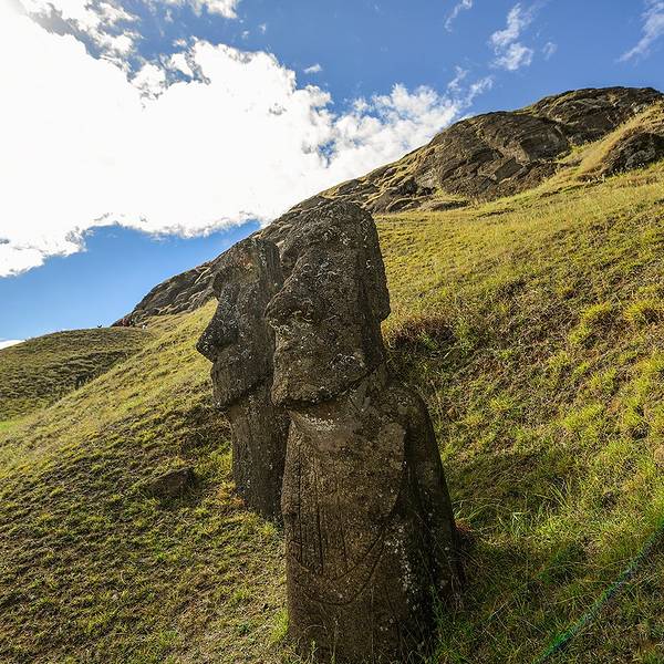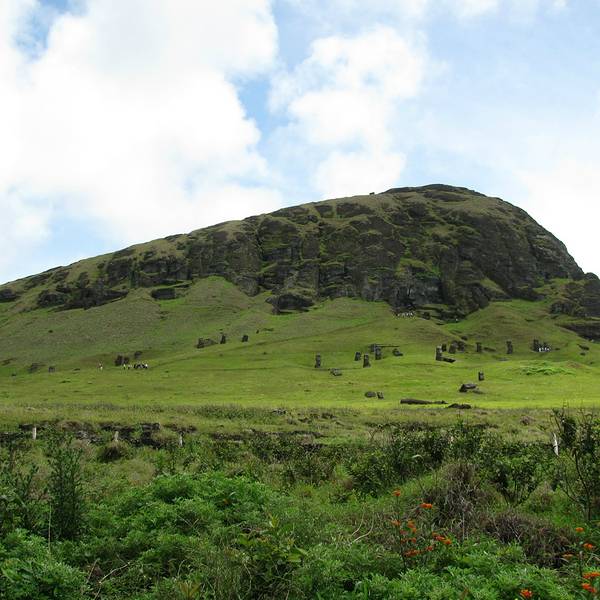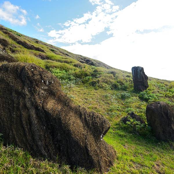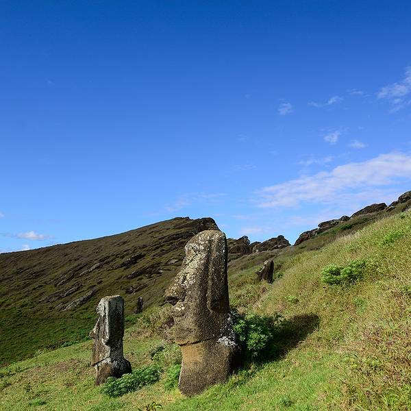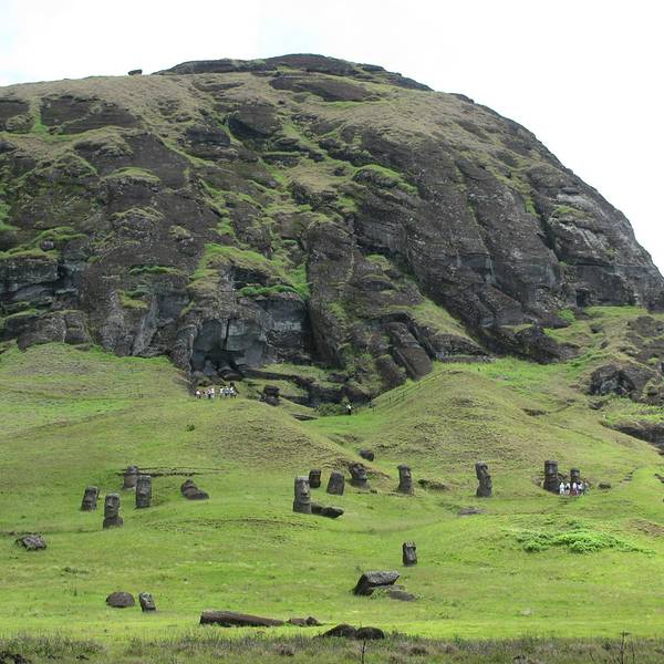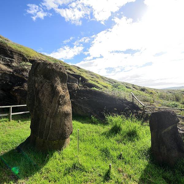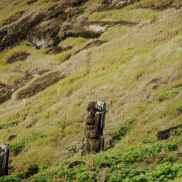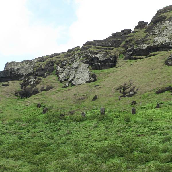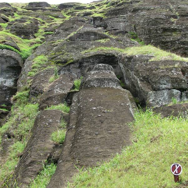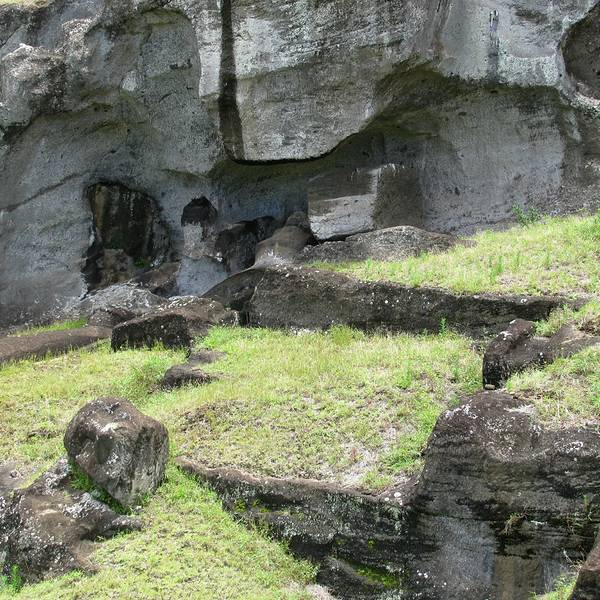 ...又不知什么缘故 建造工作在1680年以后嘎然而止 一切没有预兆地停止了 从此复活节岛成了一个谜Rano Raraku 是一座火山 也可以说是复活节岛上所有Moai的孵化器 Moai就是在这里的火山山体内 整体雕刻出来 然后搬运到岛上的各个位置 现在 这里依然散落着400多个或站立 或扑倒的Moai 甚至有Moai一半身体与火山相...Rano Raraku 是一座火山 也可以说是复活节岛上所有Moai的孵化器 Moai就是在这里的火山山体内 整体雕刻出来 然后搬运到岛上的各个位置 现在 这里依然散落着400多个或站立 或扑倒的Moai 甚至有Moai一半身体与火山相连 如同未出母体的婴儿