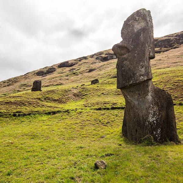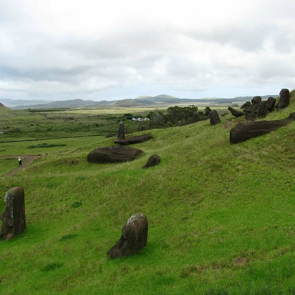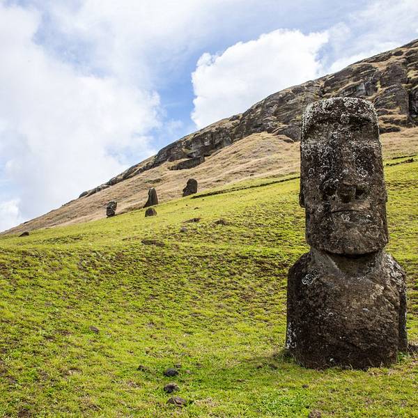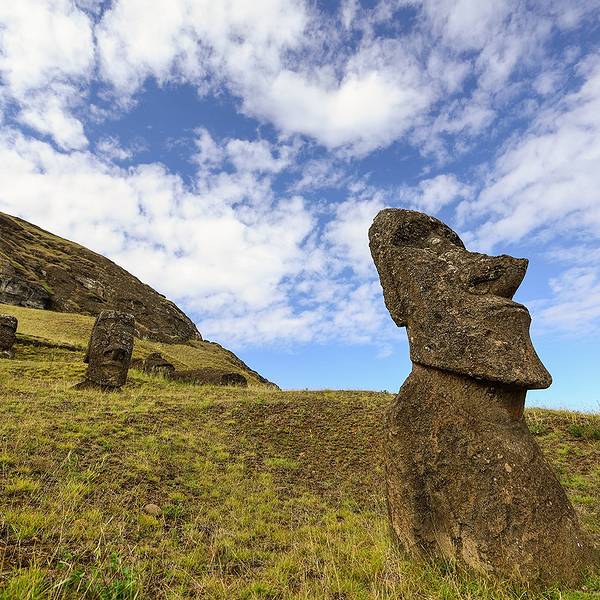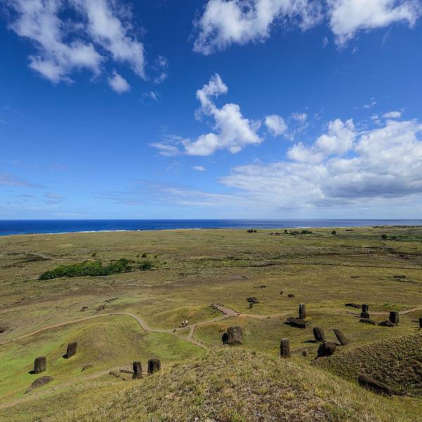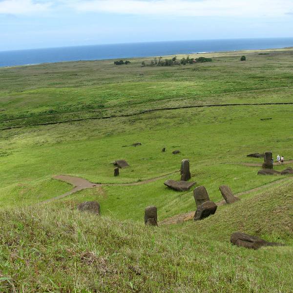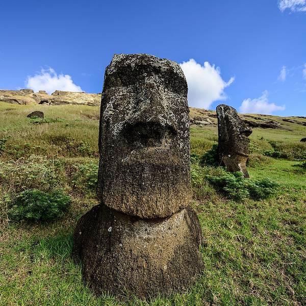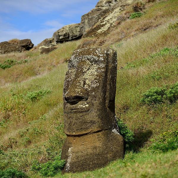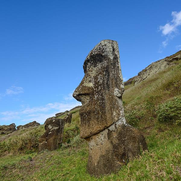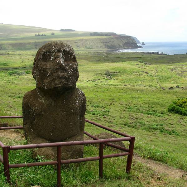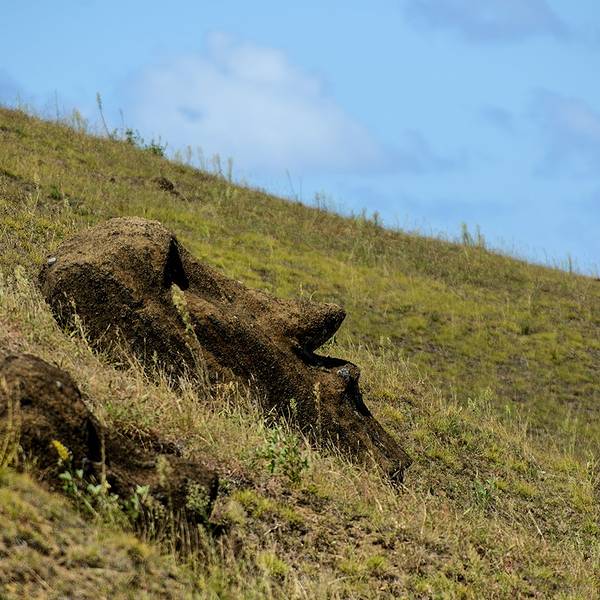...又不知什么缘故 建造工作在1680年以后嘎然而止 一切没有预兆地停止了 从此复活节岛成了一个谜Rano Raraku 是一座火山 也可以说是复活节岛上所有Moai的孵化器 Moai就是在这里的火山山体内 整体雕刻出来 然后搬运到岛上的各个位置 现在 这里依然散落着400多个或站立 或扑倒的Moai 甚至有Moai一半身体与火山相...Rano Raraku 是一座火山 也可以说是复活节岛上所有Moai的孵化器 Moai就是在这里的火山山体内 整体雕刻出来 然后搬运到岛上的各个位置 现在 这里依然散落着400多个或站立 或扑倒的Moai 甚至有Moai一半身体与火山相连 如同未出母体的婴儿