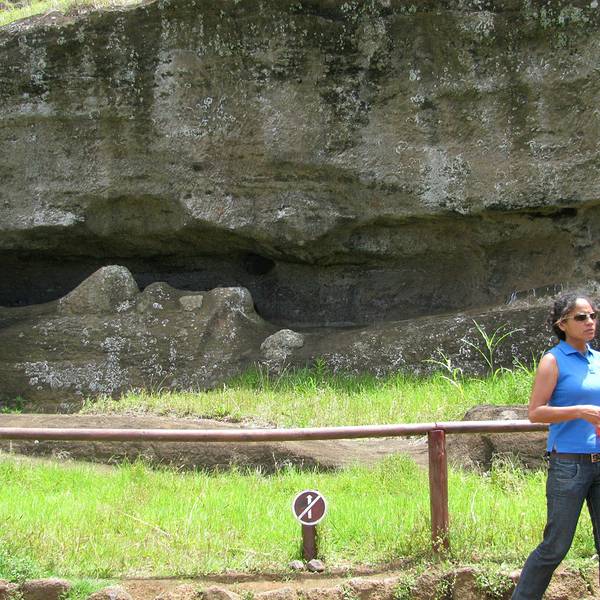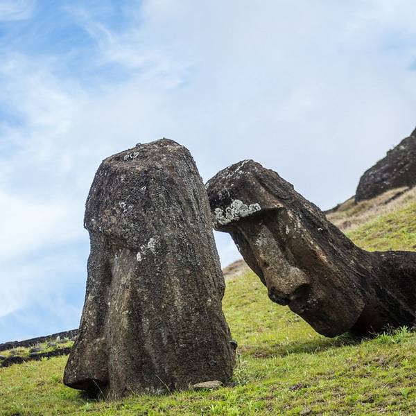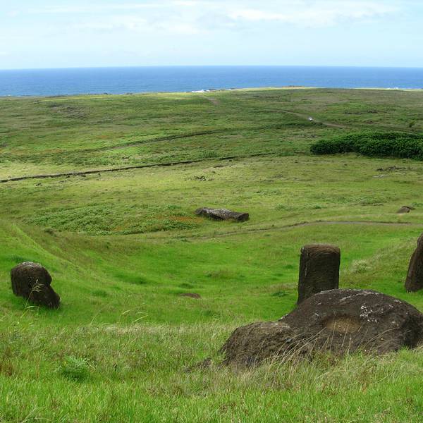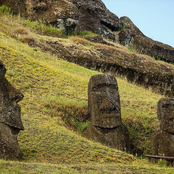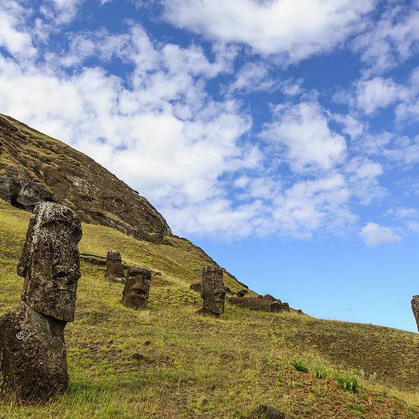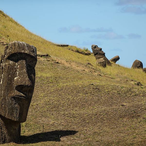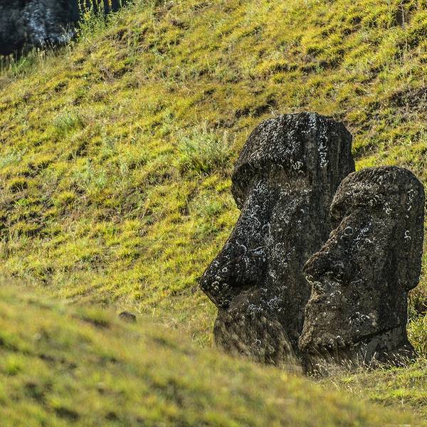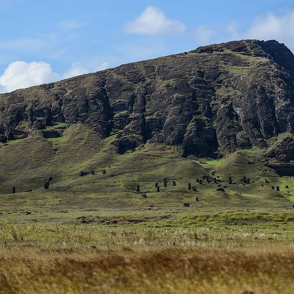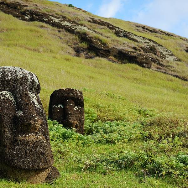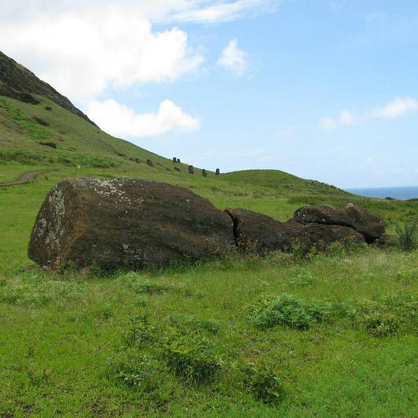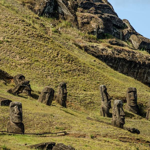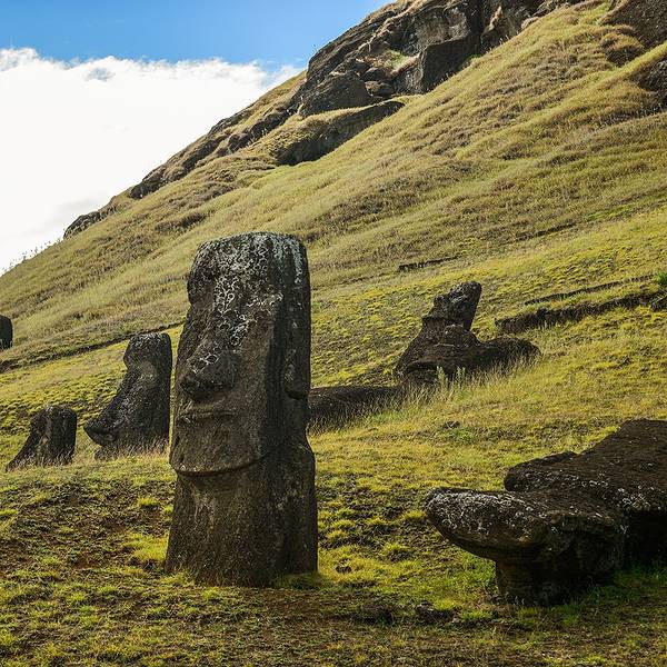 ...又不知什么缘故 建造工作在1680年以后嘎然而止 一切没有预兆地停止了 从此复活节岛成了一个谜Rano Raraku 是一座火山 也可以说是复活节岛上所有Moai的孵化器 Moai就是在这里的火山山体内 整体雕刻出来 然后搬运到岛上的各个位置 现在 这里依然散落着400多个或站立 或扑倒的Moai 甚至有Moai一半身体与火山相...Rano Raraku 是一座火山 也可以说是复活节岛上所有Moai的孵化器 Moai就是在这里的火山山体内 整体雕刻出来 然后搬运到岛上的各个位置 现在 这里依然散落着400多个或站立 或扑倒的Moai 甚至有Moai一半身体与火山相连 如同未出母体的婴儿