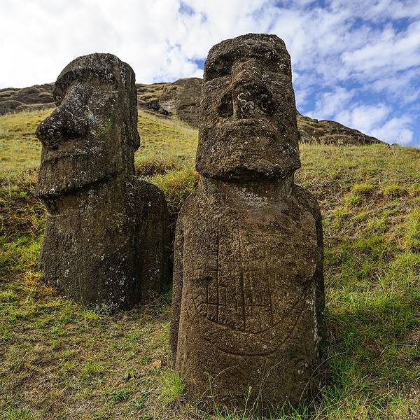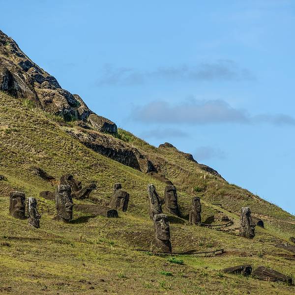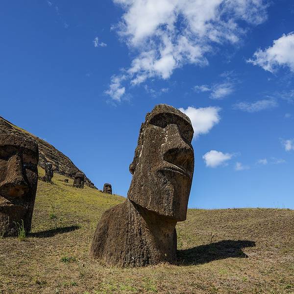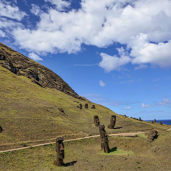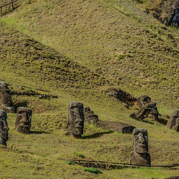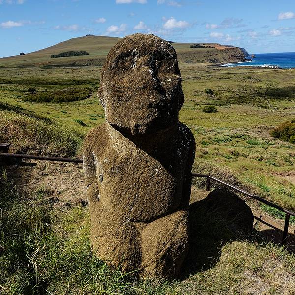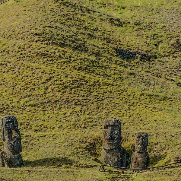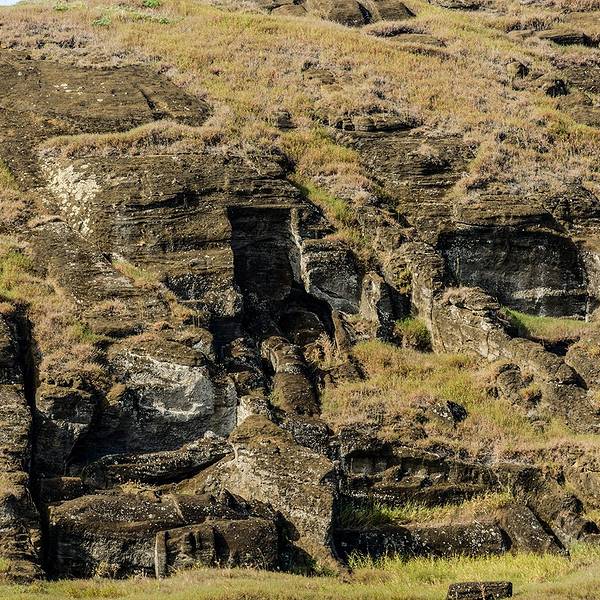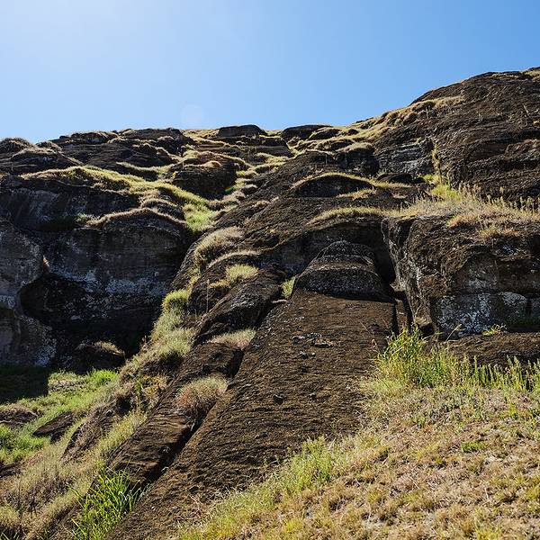 之前看过资料,复活节岛上总共有887尊摩艾石像,而95%都是诞生于拉诺.拉拉库火山口。而且在火山口内壁和外坡上,还遗留有397尊摩艾石像,其中141尊还是处于未完工状态。