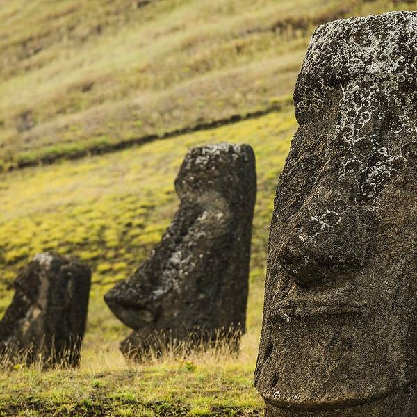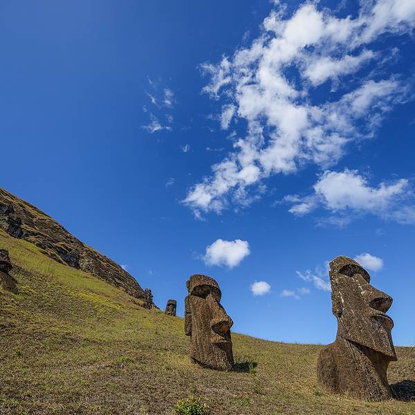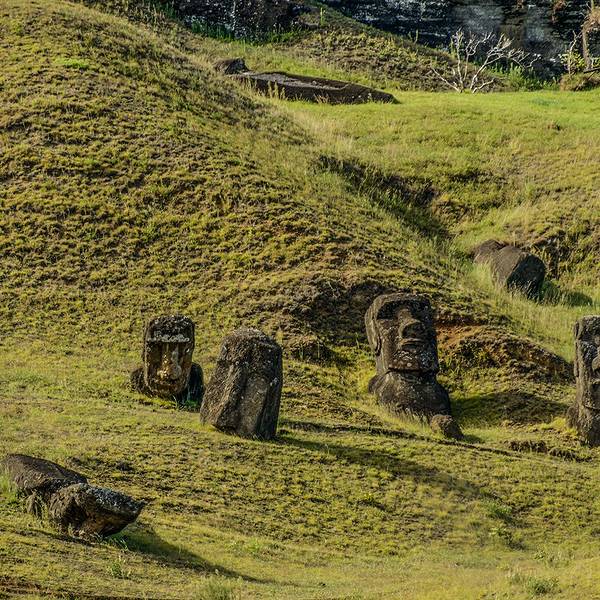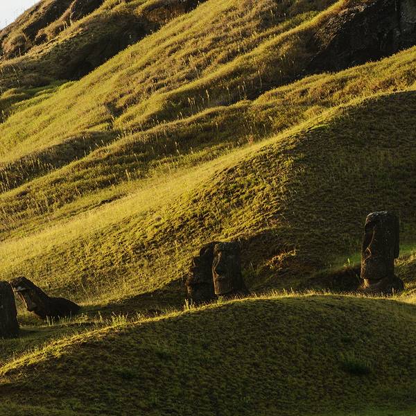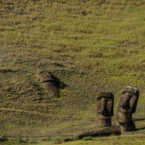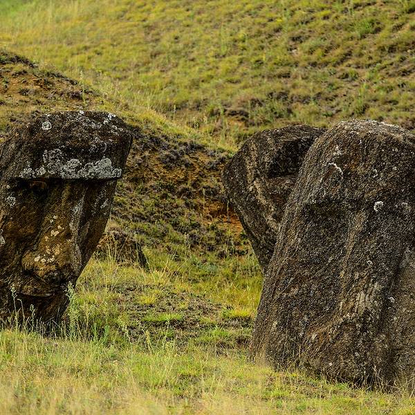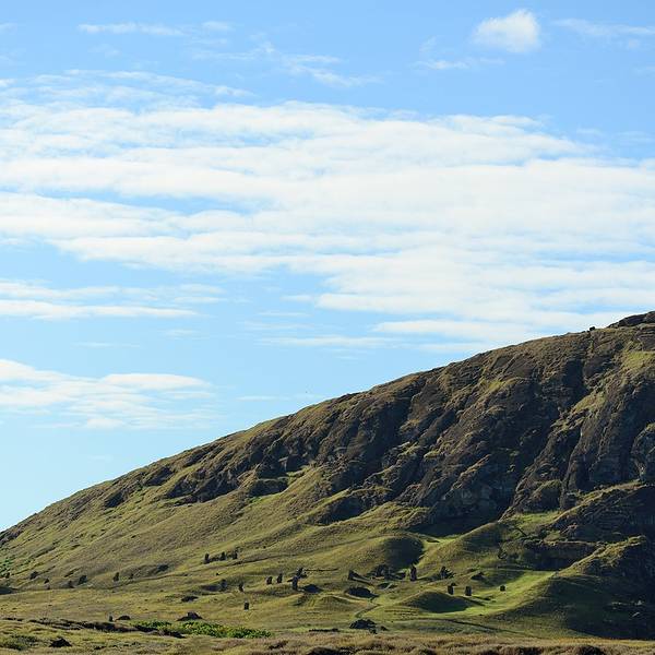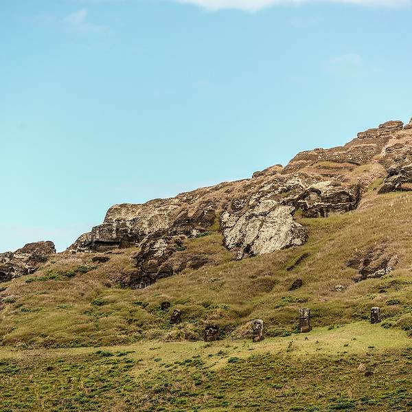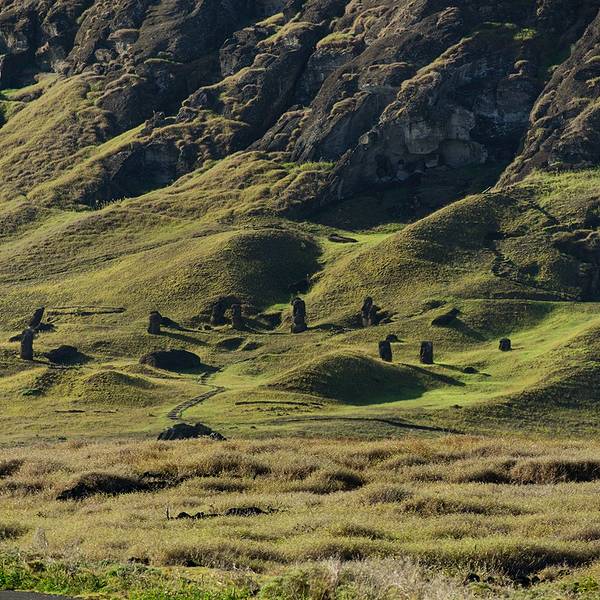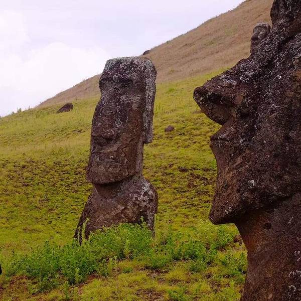 那怕就算远远的望着这些横七竖八或站或躺着的石像群,心中的震撼都已扩张到极致。经过了几百年的风吹雨打几分钟后,拉诺.拉拉库(Rano Raraku)就慢慢呈现在了眼前,那些黑影也慢慢变得真切,那些全是摩艾的身影,这里,也是让我向往以久的奇迹之地!