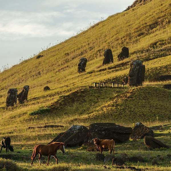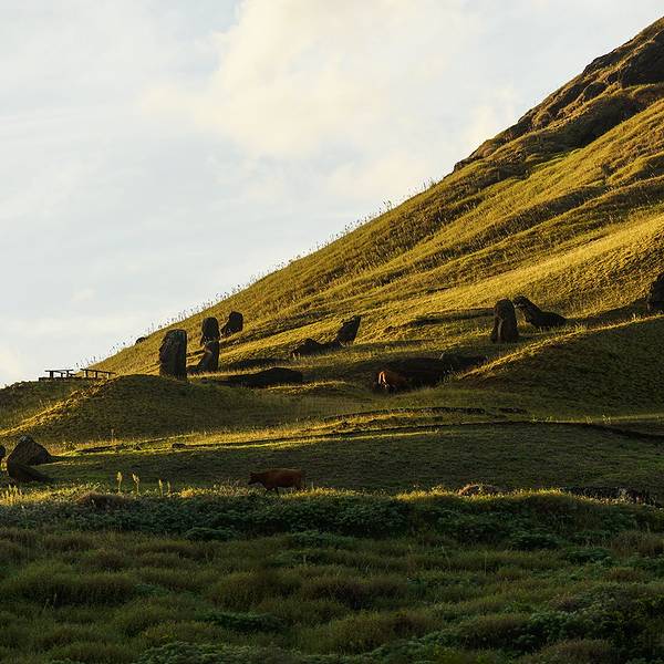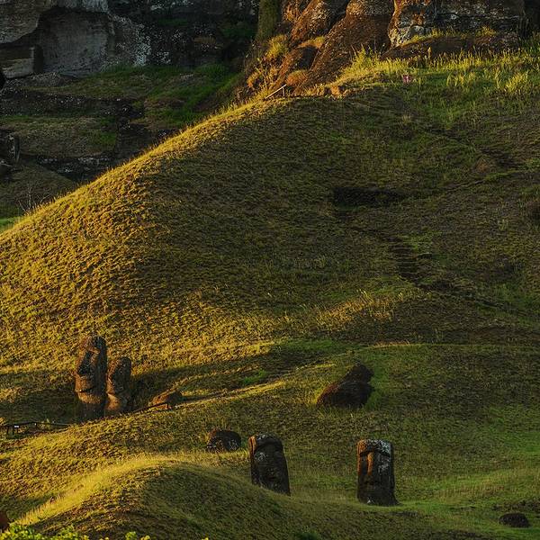 因为巨人们曾在这里诞生,巨人们也在此陨落。赶到景区入口时已是下午...几分钟后,拉诺.拉拉库(Rano Raraku)就慢慢呈现在了眼前,那些黑影也慢慢变得真切,那些全是摩艾的身影,这里,也是让我向往以久的奇迹之地!