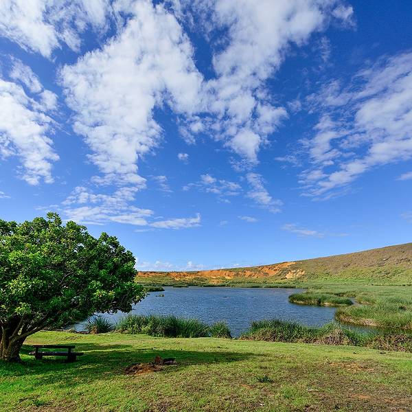 特别喜欢这一张阳光下的鲜花与巨人,谁又能想到,这张面孔之下的身体居然深入了地底7米呢,差不多接...火山外侧山坡上的摩艾都已拍完,接着又沿一条小路准备去往火山口的内则,路上的隼鹰见到我们逐渐靠近,扑腾着翅膀飞远了越过一处塌陷的山体进入了火山口内侧,一池清澈的湖水出现在了眼前,漂亮的火山湖。一棵大...火山外侧山坡上的摩艾都已拍完,接着又沿一条小路准备去往火山口的内则,路上的隼鹰见到我们逐渐靠近,扑腾着翅膀飞远了越过一处塌陷的山体进入了火山口内侧,一池清澈的湖水出现在了眼前,漂亮的火山湖。一棵大树立于湖畔,湖边生长着茂密的美洲淡水芦苇。