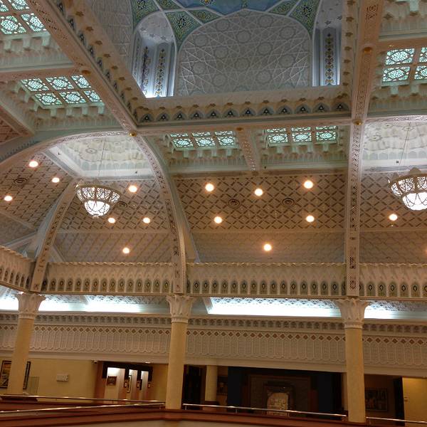 更有乐器、回教艺术和手工艺品、纺织品和武器等。展示馆是一栋两层楼高的建筑,共有 3 个展示