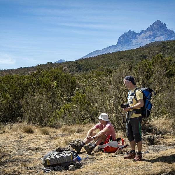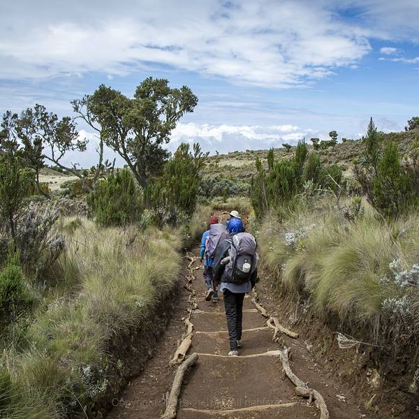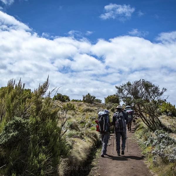 ...,本来以为波澜不惊的一天就要这么平静的过去了,谁知道华灯初上的东非大陆着实给了我一个大大的惊喜清晨,当阳光洒满大地,辛巴营地又恢复了昨日的热闹。辛勤的当地人很早就开始了一天的忙碌。准备早饭、收拾行囊、整理帐篷……最主要的还是歌唱。就像我们印象中的非洲哥们儿一样,不管生活苦不苦,工作累不累,...清晨,当阳光洒满大地,辛巴营地又恢复了昨日的热闹。辛勤的当地人很早就开始了一天的忙碌。准备早饭、收拾行囊、整理帐篷……最主要的还是歌唱。就像我们印象中的非洲哥们儿一样,不管生活苦不苦,工作累不累,只要有机会你总能看见他们聚在一起开始自己的歌唱和舞蹈。而这时候的他们总是充满了快乐和激情的。这种无忧无虑,轻松快乐的氛围总能感染周围的人,一种莫名的幸福感油然而生。第二天的行程需要从辛巴营地一直走到吉凯尔瓦营地。全程要走11.66公里,海拔上升930米。前半程的路,我们还是穿梭在赤道雨林中,只不过阔叶林逐渐被针叶林替代,植物的高度也逐渐降到等身的高度了。在树丛中,不时会有狭窄的小路出现在我们面前,伴随着的还有动物的脚印。如果说第一天的速度感受是慢的话,那么后面几天的感受就是更慢!每步间距30公分几乎成了这次登山的定式,一直持续到登顶成功。后来思考了下,也许这是向导有意而为之,给登山者找到一个适合攀登的节奏。毕竟对于一个海拔将近6000米的高山来说,一个合适的节奏可以让你走的更高更远。当然,心中不免认为这个节奏应该更适合54岁高龄的向导……当然,这种罪恶的小心思在下山过程中一次我挑起的速度比拼后还是及时的隐藏了起来。54岁高龄的速度,真心不慢!认真的讲,第二天的行程总体来说略显枯燥。在习惯了赤道雨林带来的惊喜后,这一天更显得平淡无奇。由于乞力马扎罗的山势就是一个标准的火山锥,所以攀升过程中永远不会出现移步换景的场面。无论走多久,眼前始终都是不变的马文济峰和基博主峰,这一刻时间仿佛静止了般。如果不是耳畔的风声和逐渐低矮的植物,我都会恍惚自己置身于画境之中。好在我们早已习惯了苦中作乐,一边行走一边找寻自己的乐趣。比如观察灌木上面的小花为什么如此鲜艳;比如讨论下非洲这帮哥们是如何把东西放在头上还走起来还这么稳的;又或者畅想下晚餐会有什么水果吃?龙盖线第二天中午会经过一个叫做第二山洞的营地。如果时间充裕,这里可以作为登山过程中一个休整的营地。很多前一天在辛巴营地和我们一起扎营的欧洲队伍都选择在这里多驻扎一天。看来欧洲的小伙伴们在时间上确实很充足,不像我们压缩一切时间,行程能够缩减就尽量缩减。另外第二山洞营地还有一条小路,可以绕过马文济峰,直接到达基博营地,所以时间紧张的朋友也可以选择这条路,这样可以节省一天的攀登时间。不过这里对于我们来说,终究只是一个打尖的地方,远处的吉凯尔瓦营地才是我们第二天的归宿。下午五点左右,我们到达了吉凯尔瓦营地,这时的海拔已经到达3600米。相比于辛巴营地,这里的视线好了很多,远处的东非大陆也变得清晰可见起来。随着夜晚的降临,本来以为波澜不惊的一天就要这么平静的过去了,谁知道华灯初上的东非大陆着实给了我一个大大的惊喜。一条清晰的银河伴着漫天星斗出现在头顶,从身后的雪峰一路洒向远方云层下的东非大陆。而眼前的世界,远处的灯火簇状般地点燃了云层,和头上的银河交相呼应。原本昏暗的天地,此时却被装点成油画般绚烂。平淡中洋溢着惊喜,也许这才是非洲大陆本该拥有的热情。 展开