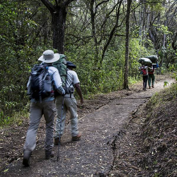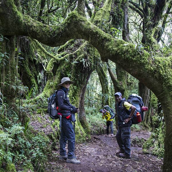 眼前的世界仿佛一张油画,色彩斑斓间充满着质感。随着天气的好转,登山的队伍变得多了起来攀登乞力马扎罗,通常有6条线路可以选择。其中1条是专业登山线路,剩下的5条是常规线路,可以供游人登顶。在众多的登山线路中,马兰古这个名字并不显眼,但是提起他的别称“可口可乐线”却大大有名。可以说可口可...攀登乞力马扎罗,通常有6条线路可以选择。其中1条是专业登山线路,剩下的5条是常规线路,可以供游人登顶。在众多的登山线路中,马兰古这个名字并不显眼,但是提起他的别称“可口可乐线”却大大有名。可以说可口可乐线和威士忌线(马切姆线)并称国家公园首推的两条线路。之所以被称为可口可乐线,马兰古线被宣传全程所有营地,都有可口可乐提供!这事想想就让人激动不已,也不知道我们能不能喝到!站在乌呼鲁峰的顶端对于攀登乞力马扎罗来说,只能算是成功的一小半。对于我们每一个人,另一半顺利的完成下撤同样不容有失。下撤?或许对于我来说应该叫大逃亡才对。八个小时的攀登,下撤仅用了不到两个小时。借助火山风化的沙石,身体后倾,脚后跟全制动,半挂式牵引,乞力马扎罗独有的下撤方式,让半年后我想起来仍然感觉膝盖隐隐作痛!下山后的基博营地早已变得风和日丽,随处充满了温暖。好的天气带给了大家好的心情,笑容在整个营地绽放,就连雪水也愉快地叮叮咚咚欢唱着。用过午饭,我们第二阶段的大逃亡开始了,9.57公里的下撤,到达霍伦博营地。也许是老天爷的坏脾气用完了,也许暴风雪本来就是老天爷设计好的登山桥段,明朗的天空再次拥抱我们。也许是冲顶后的兴奋,也许是好天气的映衬,一天下来行走20公里,海拔上升1200米,下降2200米,这段最艰苦的路程就这么愉快的完成了。当霍伦博营地出现在我们眼前的时候,庞大的营地、宏伟的木屋群、完成的配套设施、连绵的太阳能电池板、平整的石板路、简易直升机停机坪……这时我们才意识到,那个传说中的可口可乐线已经走在了我们脚下。回想前几天我们的天为被地为席,貌似我们穿越了。第六天的清晨从霍伦博开始,当阳光再次绽放自己的光辉时,我们已经洗去前一天的疲惫再次出发。与往日不同的是,这一天的心情在愉悦中多了一分留恋和不舍。这是我们最后一天的行程,我们就要离开乞力马扎罗了。随着海拔的下降,身边的植物再次茂密起来。各种叫不上来名字的植物三三两两结队占据着这片土地,让人眼前的世界变得多彩起来。不远处从未消失的云海和东非大陆依然绚烂着自己的光辉,身后的山峰则披上白衣,依旧巍峨的耸立着。眼前的世界仿佛一张油画,色彩斑斓间充满着质感。随着天气的好转,登山的队伍变得多了起来。一路下撤,不少队伍和我们擦肩而过。令人兴奋的是,我们也终于遇到了来自祖国的队伍。大家热情打着招呼,母语的交流让人倍感亲切。最后一天的行程要走20公里,相当于马兰古线登山的前两天的路程。中间经过的曼达拉营地,也就是马兰古线第一天休息的营地。如果说上山时曼达拉营地起到的作用是休整的话,那么对于下撤的我们,曼达拉更像是一个景观分水岭。前半程等身高的灌木、树丛从曼达拉营地开始消失,我们再次回归赤道雨林的怀抱。由于马兰古线位于乞力马扎罗的东侧,雨水的充分,造就了这里的植被更加茂盛。相比龙盖线,这边的树木增高了不止一倍,藤绕树,树连藤,郁郁葱葱遮天蔽日。深入其中,总有着一种身处深绿色海底的魔幻色彩。阳光透过缝隙,努力洒下一丝金沙,落在枝叶间,草地上。树间不时穿过猴子、树懒和不知名的鸟类,而密林深处的瀑布则犹抱琵琶半遮面,哗哗地欢唱着。向导们则又开始了独特植物的鉴别科普课程。欢乐的时光总是短暂,在我们还沉浸在雨林的愉悦中时,马兰古线的山门已经悄悄出现在我们的眼前。在山门的登记处,当我们领到登山证书的时候,这场为时6天,行走69公里,海拔累计攀升3800米的旅程也落下了帷幕。在返回酒店的车上,我们都莫名地陷入沉默。也许喜悦总需要一段时间才能爆发,也许不舍早已占据了我们的心底。在回程的路上,背夫们鱼贯地下车,匆忙的开始了新一轮的攀登。在雨季到来前,他们不会停下脚步。而我们,也将开始新的旅程! 展开