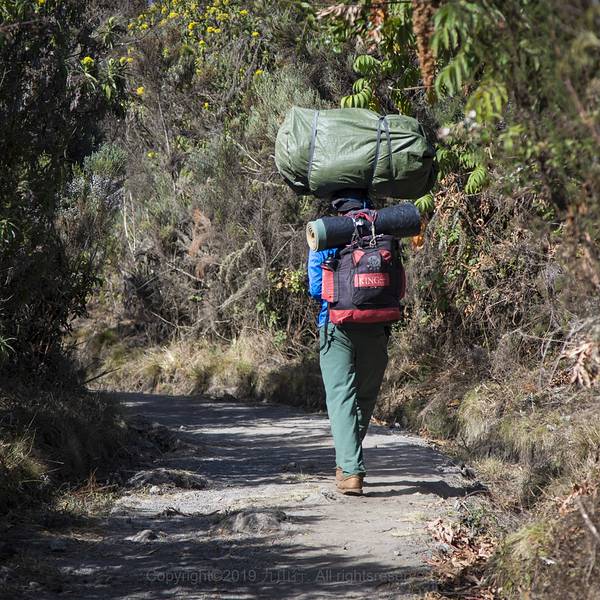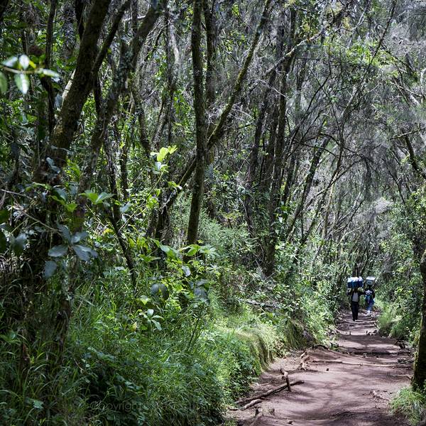 从莫西小镇出发前往龙盖山门,车程大概40公里。也许你觉得路程并不长,但是这辆充满了乡土气息、四面漏风的老爷车足足开了三个小时才到达。不过看到沿途满是头顶箩筐,徒步而行的黑哥们,又觉得聊胜于无,一股幸福感油然而生。此时脑补耳边响起了熟悉的旋律“那庄公闲游出趟城西……”龙盖线是众多攀登乞力马扎罗线路中唯一一个从山北侧攀登的线路。在出发前查找攻略的时候,很多资料都把乞力马扎罗定义为坦桑尼亚和肯尼亚的“分水岭”、“分界线”、“交界处”……甚至有的科普龙盖线是从肯尼亚登山。于是迷茫的我一直认为乞力马扎罗一半属于坦桑尼亚,一半属于肯尼亚。就像喜马拉雅山一半属于中国,另一半属于尼泊尔、印度或者其他什么国家一样。不过一路的颠簸告诉我们,我们一直没有离开坦桑尼亚的国境,乞力马扎罗全部属于坦桑尼亚,只是距离肯尼亚很近很近而已。这一路下来,我们一边前行一边接人(厨师、背夫),还有物资采购。要知道后面这5天的伙食如何全部要看我们今天能够买到什么。到达龙盖山门的时候已经是下午1点的时间了。在办理完登山手续,我们就开始了今天的午餐。见证奇迹的时刻到了!啊,不对,是见证厨艺的时刻到了。在我们羡慕旁边欧洲团队有三明治、鸡腿和果汁的时候,我们的正餐居然是意大利面配肉酱!不得不说,我们厨师的水品还是不错的!走了这么多国家,能让挑剔的中国胃适应的餐食还真不多,但是我们团队的厨师做到了!我们的随行团队负责午饭、集合、整理行囊……,而我们除了吃,就剩下无休止地等待了!这帮黑哥们儿是真不着急啊,眼瞅着都下午2点多了,还没出发呢!心也太大了吧!这不得猫黑才能到营地啊!在我心中无限次吐槽后,我们终于开始了第一天的徒步。不对,应该是饭后的散步!因为向导会一路尽量控制步伐和节奏,每一步的跨度也就30公分的样子。如果你想走快一点,对不起,他会拦住你让你走在他的身后,不允许超过他。从龙盖山门到达辛巴营地,行程4.26公里,我们足足走了将近2个小时。所以这一路下来,就成了现实版的“蠕动”。缓慢的“蠕动”虽然拉低了行走的愉悦,但是也送给我们一个别样的享受,那就是第一次穿梭在赤道雨林中。以往的登山运动由于海拔和纬度的问题,很少能够穿梭在森林中。即使有森林,也多为针叶林。而乞力马扎罗作为一个独立的火山锥,攀登时要从海拔2000米左右出发,所以行程的前两天基本都在赤道雨林中行走,后面几天才会经过灌木和高山草甸,最后到达积雪冰川带。由于降水量的关系,龙盖线的植被覆盖要比马兰古线的稀疏些,但是植物们还是在茁壮地生长着。没有整齐的规划,各种树木夹杂着灌木、藤条在这片天地中野蛮有力地生长着。其间透过树缝洒落下来的阳光,把雨林装点得光怪陆离。森林中分布着很多的稀有植物,向导一边走,一边带我们分辨植物。其中很多植物都是只生长了这片山区,也就成了坦桑尼亚人的骄傲。另外,还是要夸一下当地人对于乞力马扎罗的管理和保护。对于坦桑尼亚来说,乞力马扎罗国家公园并不仅仅是个登山公园,这里同样也是野生动物保护区。乞力马扎罗国家公园和对面肯尼亚的安博塞利国家公园紧紧相连,野生动物在两个国家公园间自由的穿梭。当地人在乞力马扎罗国家公园规划好了徒步登山的道路,在保证人员安全的同时,也将这片土地更多的还给了大自然。植物、动物可以在这里安全的成长。除此之外,在行走的路上,向导经常会指引我们找到那些高大威猛的树木。这些都是山下速生林通过风或者动物带到山上的种子成长起来的。不过为了更好的保护生态环境,当地管理人员会定期清理这些外来的植物物种。在新奇的发掘中,我们到达了第一天的营地,辛巴营地。在斯瓦希里语中辛巴就是狮子的意思。和向导聊,大概这里曾经有狮子生活过,所以也就有了这样的得名。当我们到达的时候,营地中已经扎满了帐篷,当地人已经和游客在空地上又唱又跳起来。透过树丛,远处的马文济峰和基博主峰依稀可见。回首间,非洲大陆和云层已被晚霞染成了红色。暮光中,我们结束了一天的行程。第一天的登山更像是郊游,清新的空气,美丽的食物,新奇的风景,一切都是那么的美好! 展开